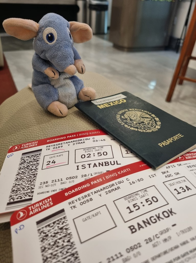Todo listo para mi trayecto de 37 horas a Bangkok vía Estambul. Son 14 horas México-Estambul, 12 de escala increíble y 9 más Estambul-Bangkok.