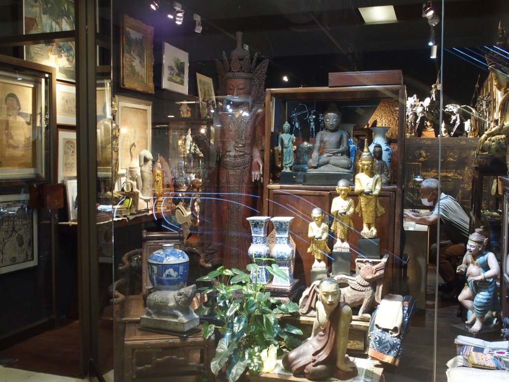 Pero las galerías no terminan ahí. Entré a lo que parecía ser un mall normal, River City Bangkok, y resultó ser un espacio de 4 pisos llenos de galerías y tiendas de antigüedades (de las finas finas finas, de jade y porcelana de la dinastía Ming o qué sé yo). Estaba llenos de locales disfrutando las exposiciones, yo creo que más en plan museo porque los precios estaban prohibitivos (pero de nuevo, qué sé yo).