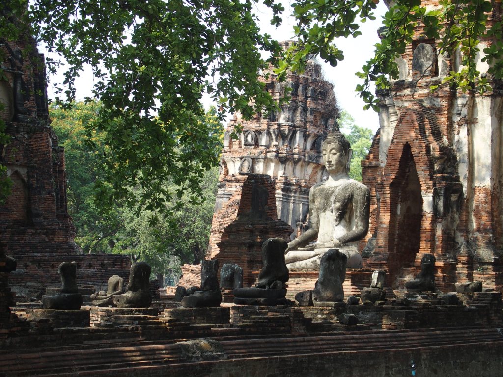 Ayutthaya es una pequeña isla llena de ruinas que está a una hora y media de Bangkok en tren. La mayoría están en un parque y se puede caminar de una a otra, pero lo recomendado es tomar un Tuk tuk o una bici. Obvio me decidí por lo segundo y, a pesar del calor, valió muchísimo la pena. Las ruinas principales están hermosas y por ellas vale la pena el viaje y hay decenas de ruinas más, muchas verdaderamente hechas pedazos pero igual simpaticonas.