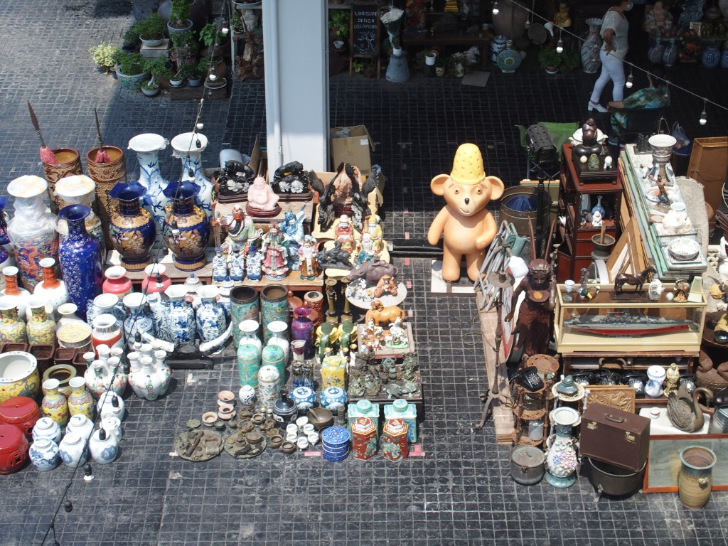 El sábado fui al (creo que oficialmente) mercado más grande del mundo, Chatuchak Market, un espacio con 15,000 puestos que abre solo los fines de semana. ¡Qué paraíso! Además de ser el lugar perfecto para comprar souvenirs hay miles de puestos de lo que se les ocurra (ah, excepto de cosas frescas, ese mercado está enfrente): cosas de casa, platos y vajillas, libros, arte, masajes, comida… puestos y puestos y puestos. El mercado está muy organizado por zonas y secciones, y les recomiendo buscarse un mapita en google. Por si fuera poco, enfrente del mercado hay un edificio (un centro comercial repurposed) de 5 pisos lleno de antigüedades y ropa de segunda mano con cosas espectaculares… ¡Qué hubiera dado yo por poderme traer un mueblecito chino antiguo! Pasé horas y horas ahí y sí compré algunas (varias) cositas.