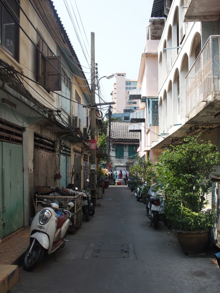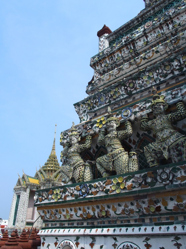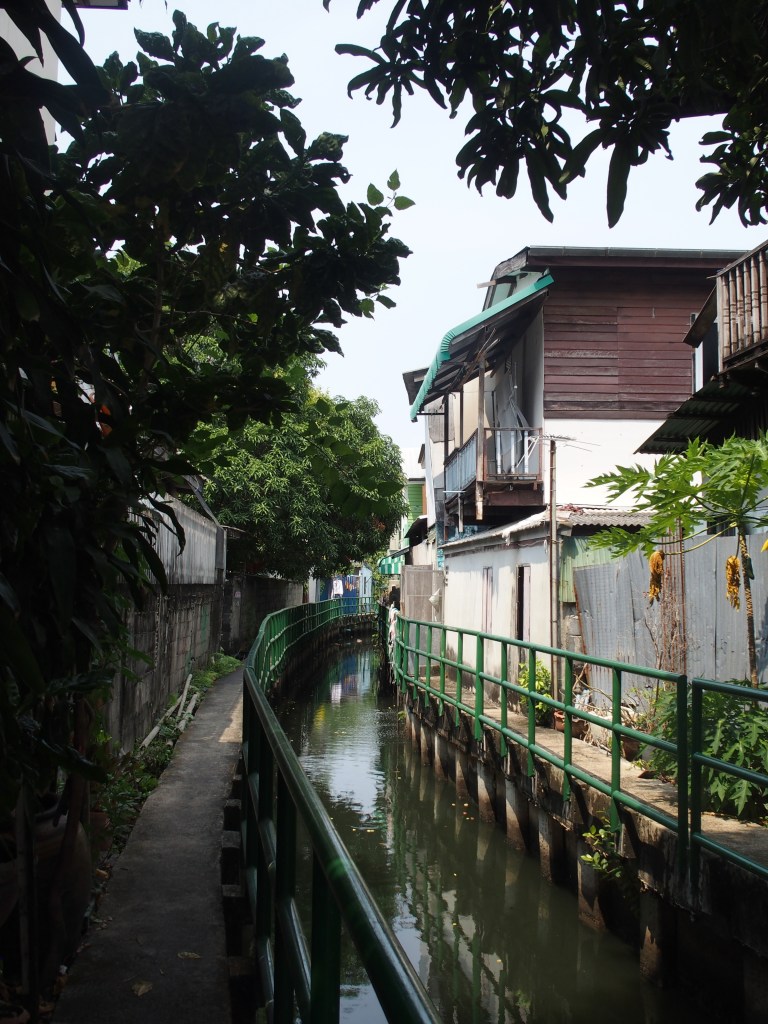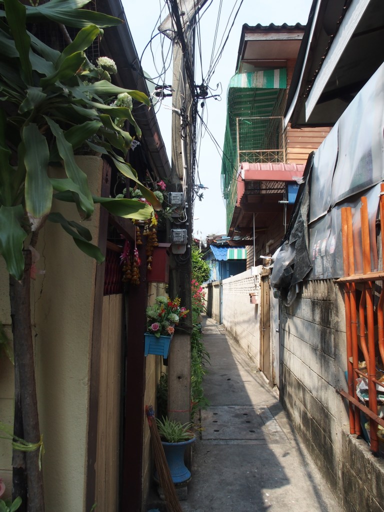 El domingo empecé temprano porque tenía muchas cosas que hacer. A eso de las 9:00, ya estaba del otro lado del río en Wat Arun, otro de los templos principales de la ciudad y que no me quería ir sin conocer. Es muy diferente a los del palacio real, menos ostentoso aunque igual muy atascado -decorado hermoso con miles de pedazos de porcelana-. Está sobre la orilla del río y desde ahí se ve toda la ciudad. El problema era el calor, con sensación térmica de 41° pasear por el templo o disfrutar los espacios abiertos dejaba de ser muy placentero. Igual al ser mi último día decidí que el clima no me iba a vencer y me animé a recorrer la colonia aledaña al templo, entré cojeando (me lastimé el talón de aquiles de tanto caminar) y sudando como puerco. ¡Valió muchísimo la pena! El otro lado del río se siente como otra ciudad pues tiene una vibra más tranquila y pueblerina… con pequeñas casitas con jardines junto a los canales y, como era domingo en la mañana, mientras tomaba fotos me tocó ver la rutina de limpieza, jardinería, lavado de ropa y otras actividades domésticas de los habitantes.