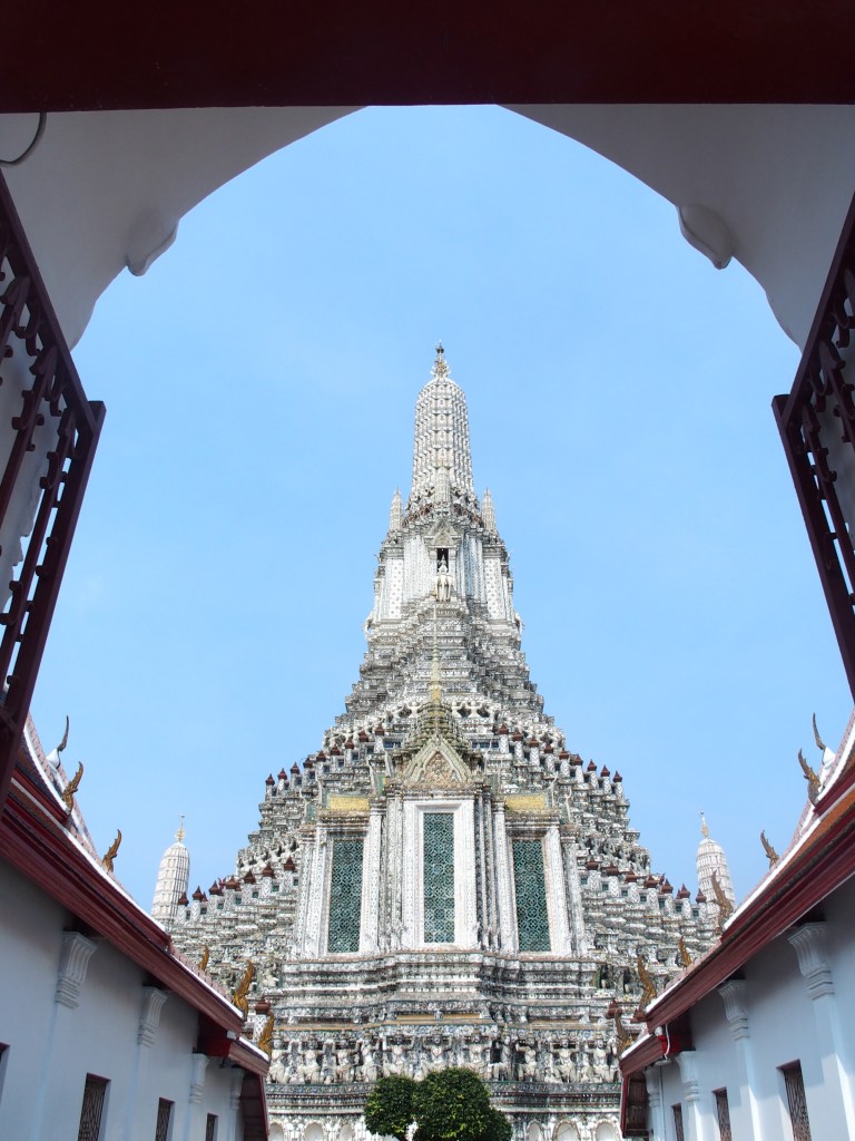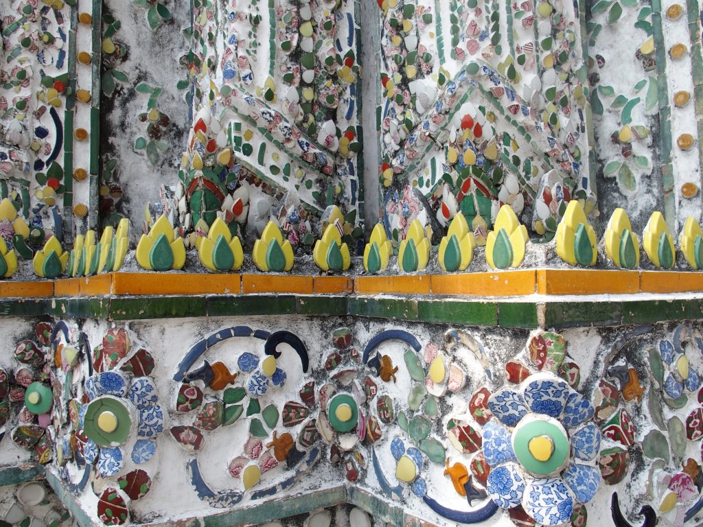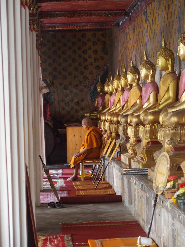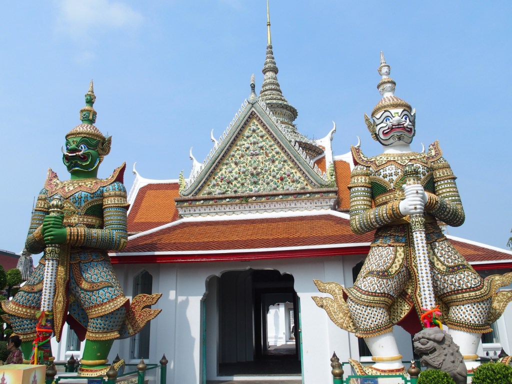 El domingo empecé temprano porque tenía muchas cosas que hacer. A eso de las 9:00, ya estaba del otro lado del río en Wat Arun, otro de los templos principales de la ciudad y que no me quería ir sin conocer. Es muy diferente a los del palacio real, menos ostentoso aunque igual muy atascado -decorado hermoso con miles de pedazos de porcelana-. Está sobre la orilla del río y desde ahí se ve toda la ciudad. El problema era el calor, con sensación térmica de 41° pasear por el templo o disfrutar los espacios abiertos dejaba de ser muy placentero. Igual al ser mi último día decidí que el clima no me iba a vencer y me animé a recorrer la colonia aledaña al templo, entré cojeando (me lastimé el talón de aquiles de tanto caminar) y sudando como puerco. ¡Valió muchísimo la pena! El otro lado del río se siente como otra ciudad pues tiene una vibra más tranquila y pueblerina… con pequeñas casitas con jardines junto a los canales y, como era domingo en la mañana, mientras tomaba fotos me tocó ver la rutina de limpieza, jardinería, lavado de ropa y otras actividades domésticas de los habitantes.