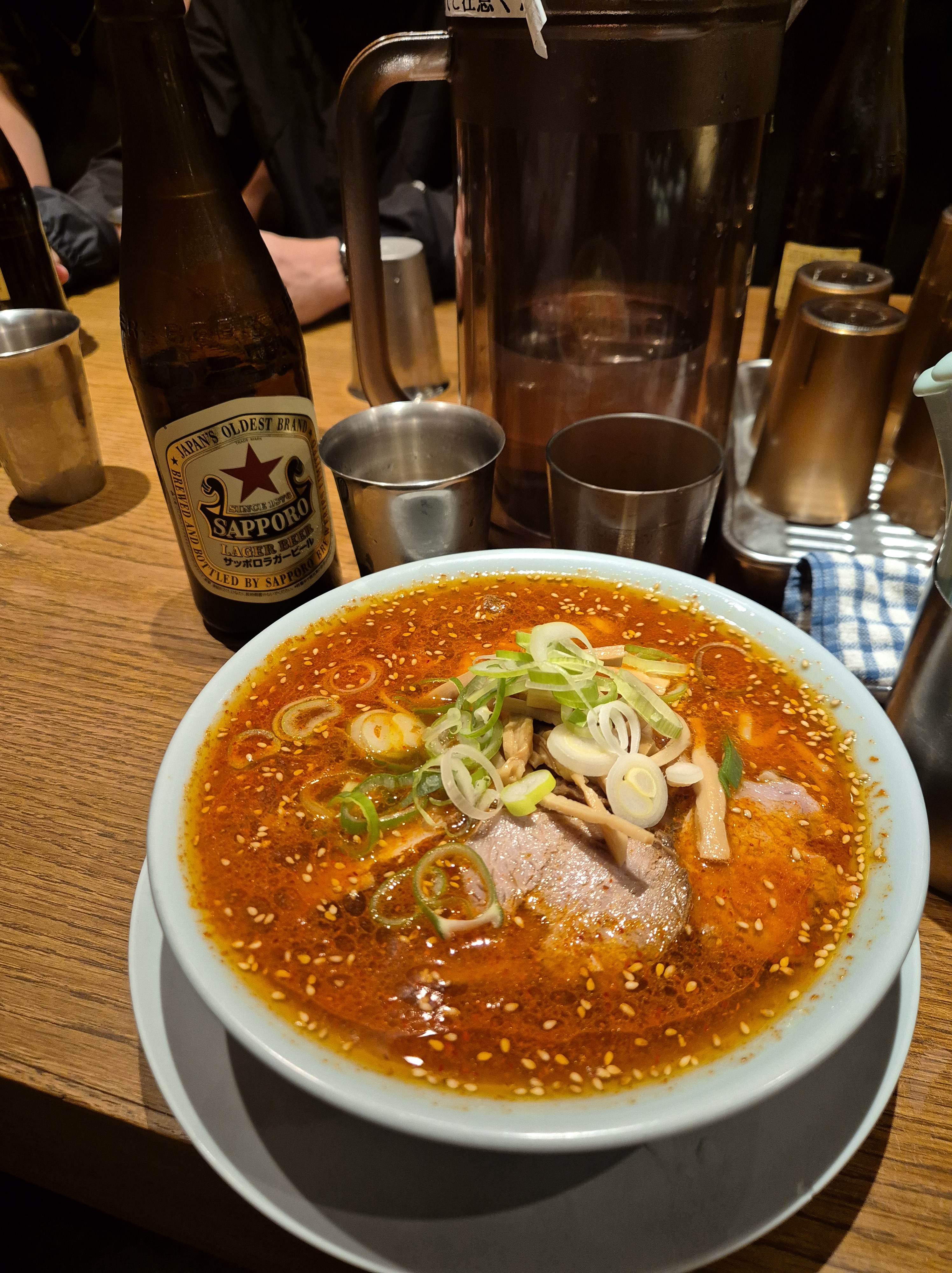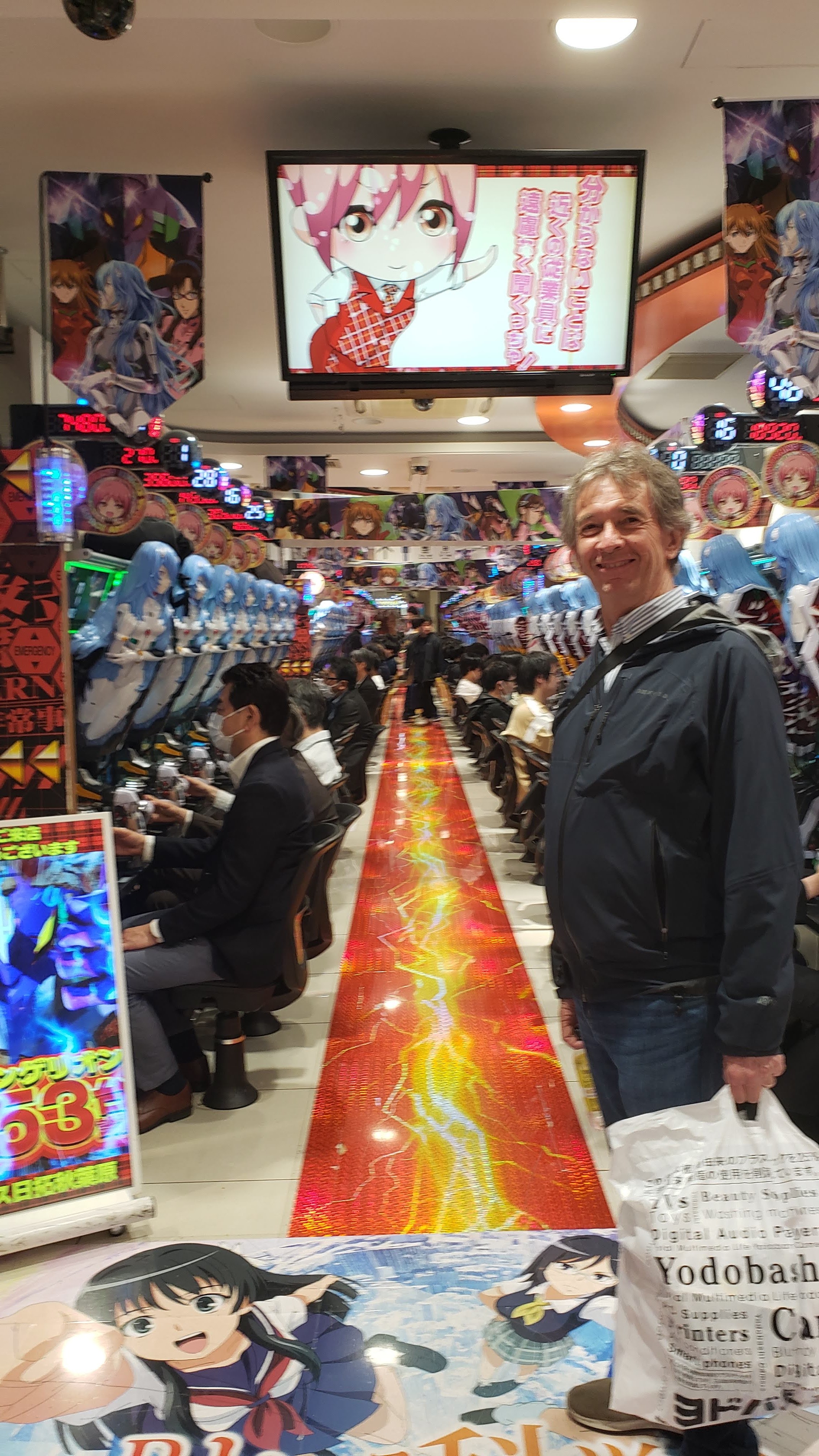 Asakusa es por mucho el lugar más turístico de Tokio, y yo prefería sacarlo rapidito. Hay un templo impresionante, Senso-Ji y la zona alrededor es linda, pero llenas de tienditas para turistas – completamente diferente a la zona de Shinjuku-Shibuya que estuvimos el primer día-. Me gusta ir al principio del viaje porque, aunque claro que vale la pena, si uno lo deja para el final ya te sientes muy abrumado por la cantidad de turistas. Cerca de Senso-ji está el rio Sumida, el principal de Tokio, y vale mucho pasear por el río hacia el sur, donde hay unas vistas icónicas – especialmente el Skytree y los edificios de Asahi (tip. se puede tomar en la calle, entonces siempre pueden pasar al 7eleven o Lawsons a comprar una chelita, un onigiri y hacer una parada para retomar fuerzas a medio paseo). Después queríamos ir al museo de Edo, pero estaba cerrado por remodelación – creo que abre en 2025- y decidimos mejor caminar al Skytree (unos caminamos, otros tomaron metro – no era una distancia menor-). Al final no nos subimos, pero verlo desde cualquier punto es impresionante. Es la tercera construcción más alta del mundo, mide 634 metros. Comimos una hamburguesita por ahí y nos movimos a Akihabara, la zona de electrónicos y animé – vale la pena ir en la tarde-noche para ver las luces y a toda la gente saliendo del trabajo-. En Akihabara está Yodobashi Camera (o bueno, su sucursal más atascada) una tienda de electrónicos de 8 pisos, que vale muchísimo la pena. Caminamos un poco por ahí y nos fuimos a Shinjuku -espeficamente a la zona de Kabuchiko, el red district- a cenar un ramen picosísisimo pero delicioso – tip. coman donde sea, no hagan caso a reviews de google maps – son puro review de extranjero, y los japoneses califican a un lugar bien con 3 estrellas, entonces un lugar con 4.5 es que va puro gringo- y tampoco se desvivan por comer en lugares que les recomendaron. Si los pueden meter en su itinerario, bien, pero la verdad se come delis en todos lados-. Si hay japoneses, seguro está bueno.