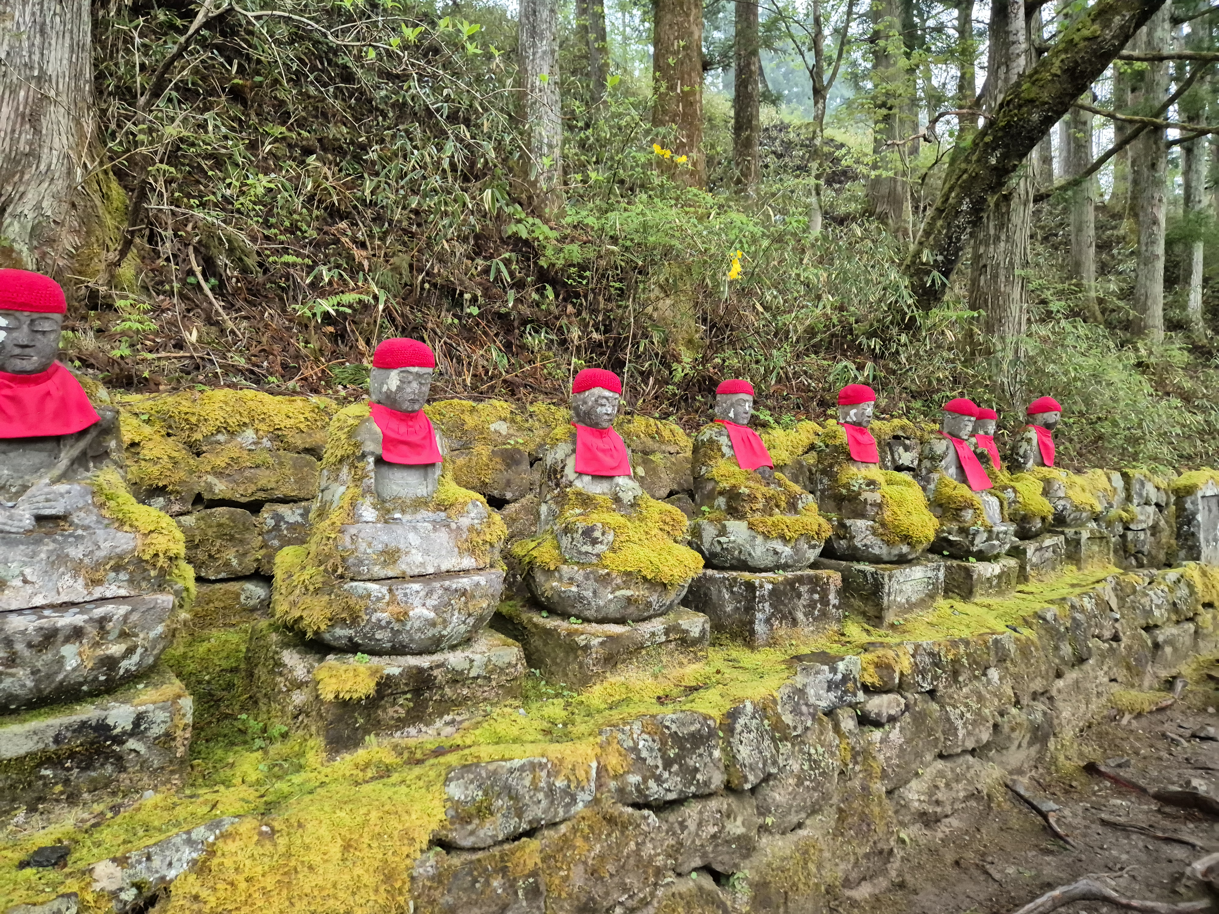 Bajando hacia el río del lado opuesto de los templos se encuentra el abismo de Kanmangafuchi, uno de mis lugares de Japón, que es un caminito en medio del bosque que bordea el río y que tiene cientos de esculturas de Buda a las que “visten”. Hay que cruzar por un punto muy específico (nada que no puedan encontrar en Google Maps) que te hace caminar por una colonia con casitas encantadoras. De verdad, todo en esa zona es mágico.