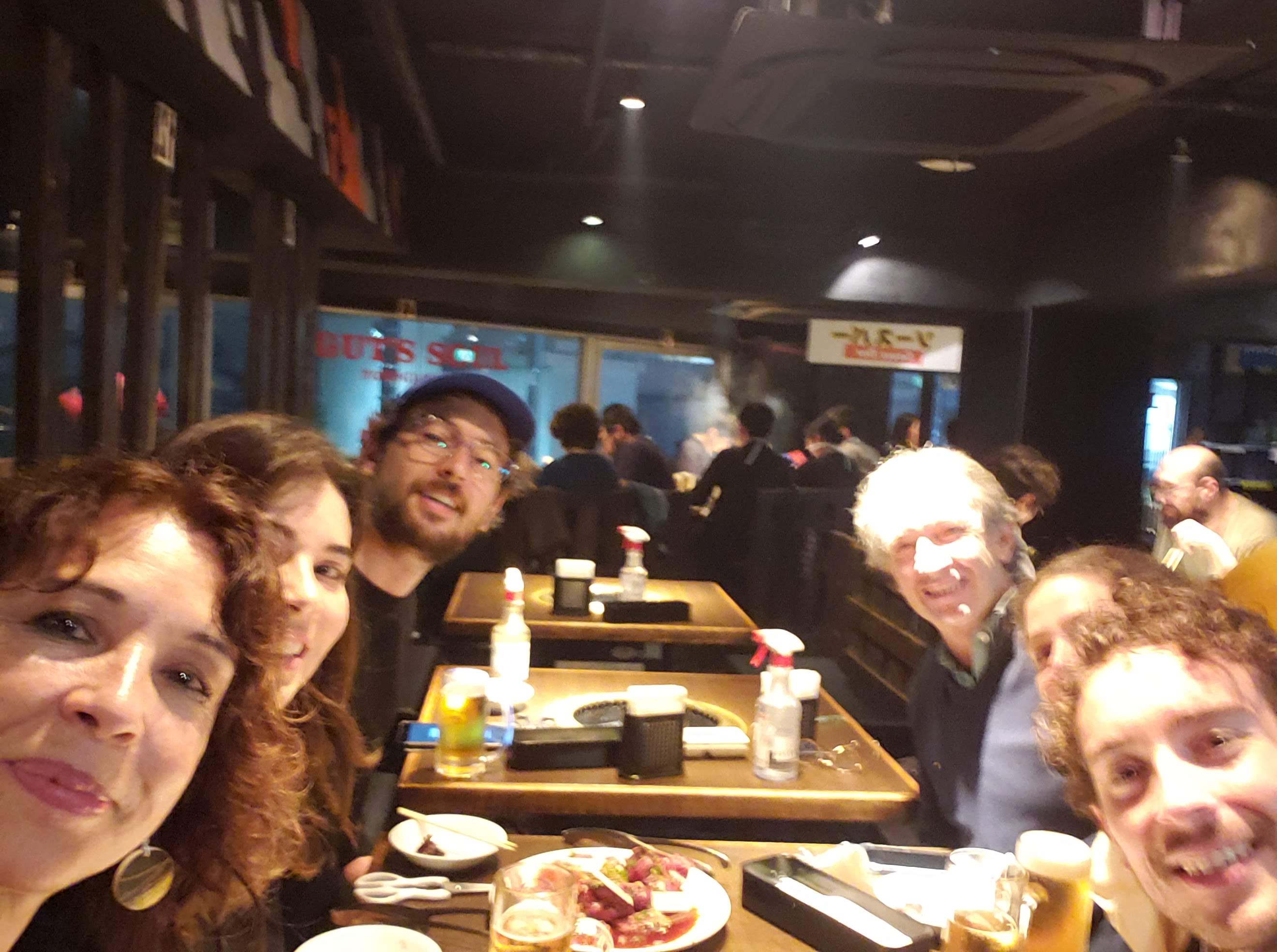En la tarde nos fuimos a hacer distintas cosas – el único con una historia relevante fue mi papá, que se echó un drink en un bar de jazz y solo aceptaban efectivo, y siendo él no traía un yen, pero hizo muchos amigos y lo solucionó (੭˃ᴗ˂)੭- y quedamos de vernos en la noche para cenar en una colonia cerca de Shinjuku que se llama Yoyogi. Por error acabamos en un restaurante en un tercer piso que tenía grill en cada mesa y era all-you-can-eat-and-drink. Comimos carne infinita y tomamos mucho vino de arroz y cerveza (tip. Tokio es una ciudad que no solo se vive a nivel calle, los edificios tienen locales, restaurantes y otros comercios en todos los pisos, aventúrense a mirar pa’rriba).