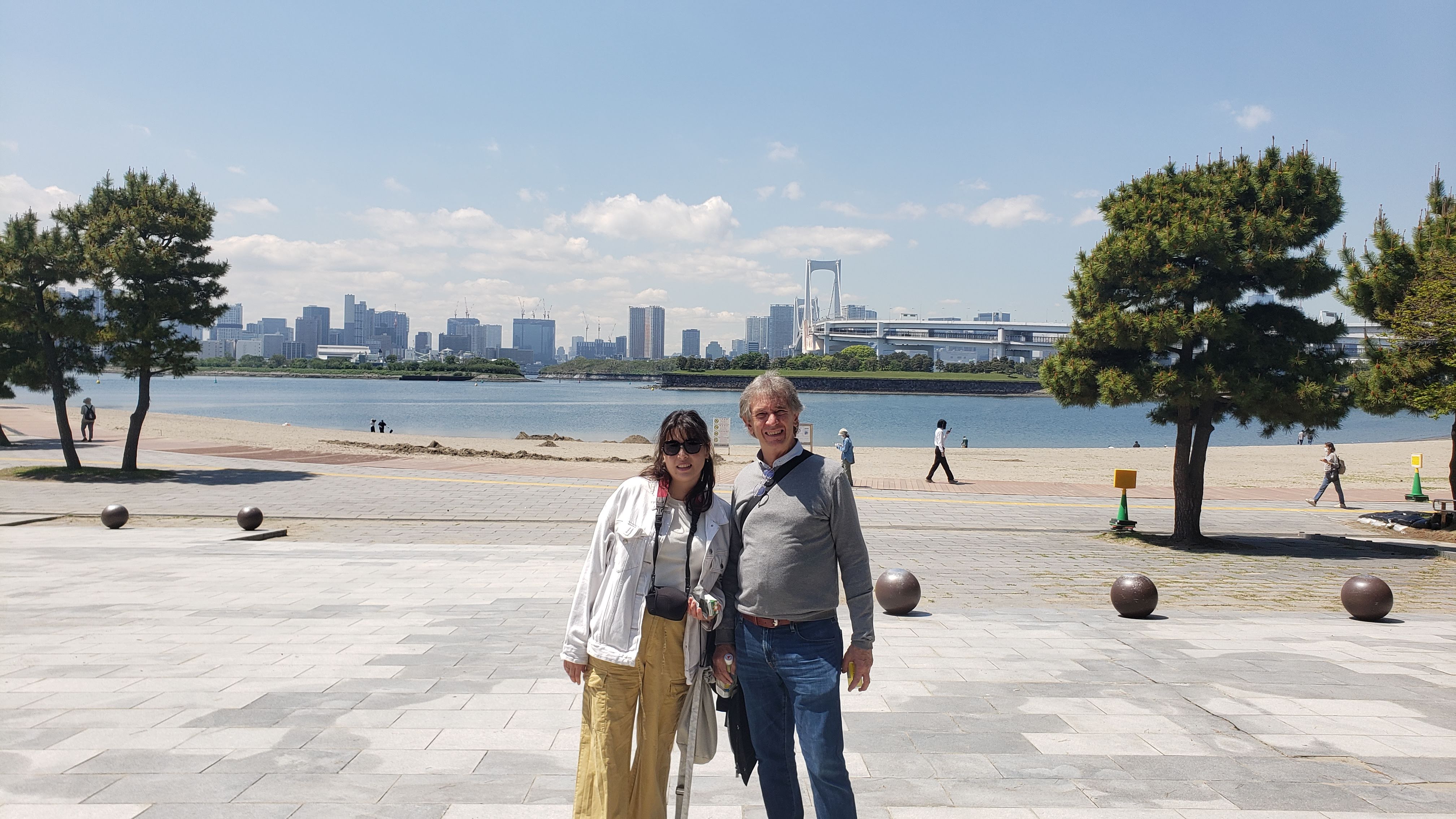Fuimos a Odaiba, una de las famosas islas artificiales tokioitas y que es un mundo completamente diferente al resto de Tokio (mi mamá decía que el metro de Tokio era como el clóset de Narnia, sin saber qué esperar al salir de la estación). Para llegar hay que cruzar el Rainbow Bridge (tomen el metro que específicamente va por ahí). En Odaiba está el Miraikan, que es el museo de Ciencia y Tecnología (esta vez no fuimos, pero vale la pena, especialmente con niños o si aman la ciencia) y varios edificios icónicos como FujiTV, vistas industriales de locos y es un lugar perfecto para andar en bici ya que las distancias son enormes (Ger nos alcanzó más tarde porque tenía chamba, por si no lo ven en las fotos).