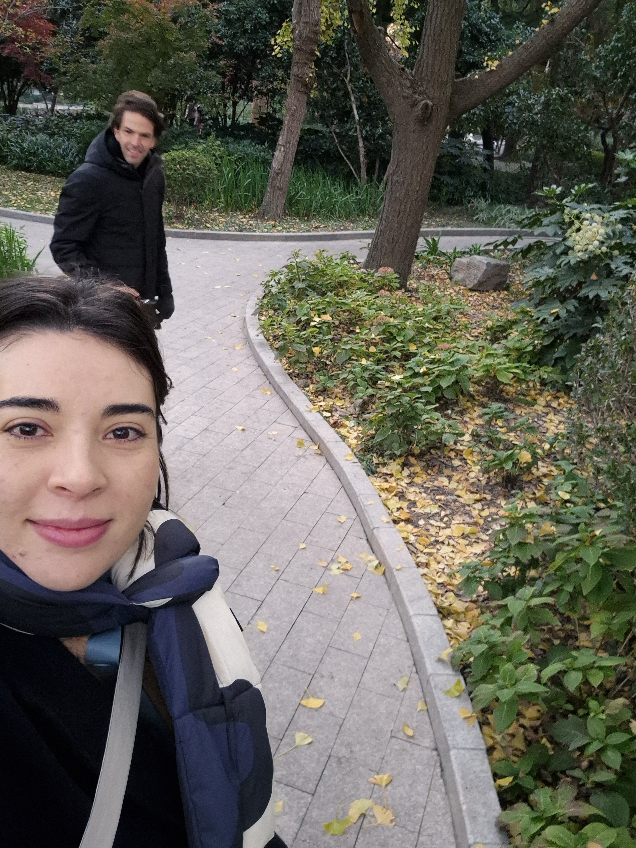 En la estación me recibió Nacho, amigo de la infancia de mi hermano, piloto, con quien ya he coincidido en algún otro viaje y que es un verdadero tipazo y un verdadero Shangháita -y habla mandarín cañón-. Él vive aquí desde hace 4 años y por sus horarios de piloto, ayer era el único día que nos podríamos ver en este primer momento de Shanghái, y la verdad fue ideal porque “caí en blandito”. Fuimos primero a su depa a dejar mis cosas, que está muy cerca del depita donde me estoy quedando -pero era muy temprano para check-in-, en una zona hermosa que se llama Concesión Francesa. Y a Nacho, como a mí, le fascina caminar, y para no caer rendida ante el cansancio salimos a dar la vuelta por la colonia.