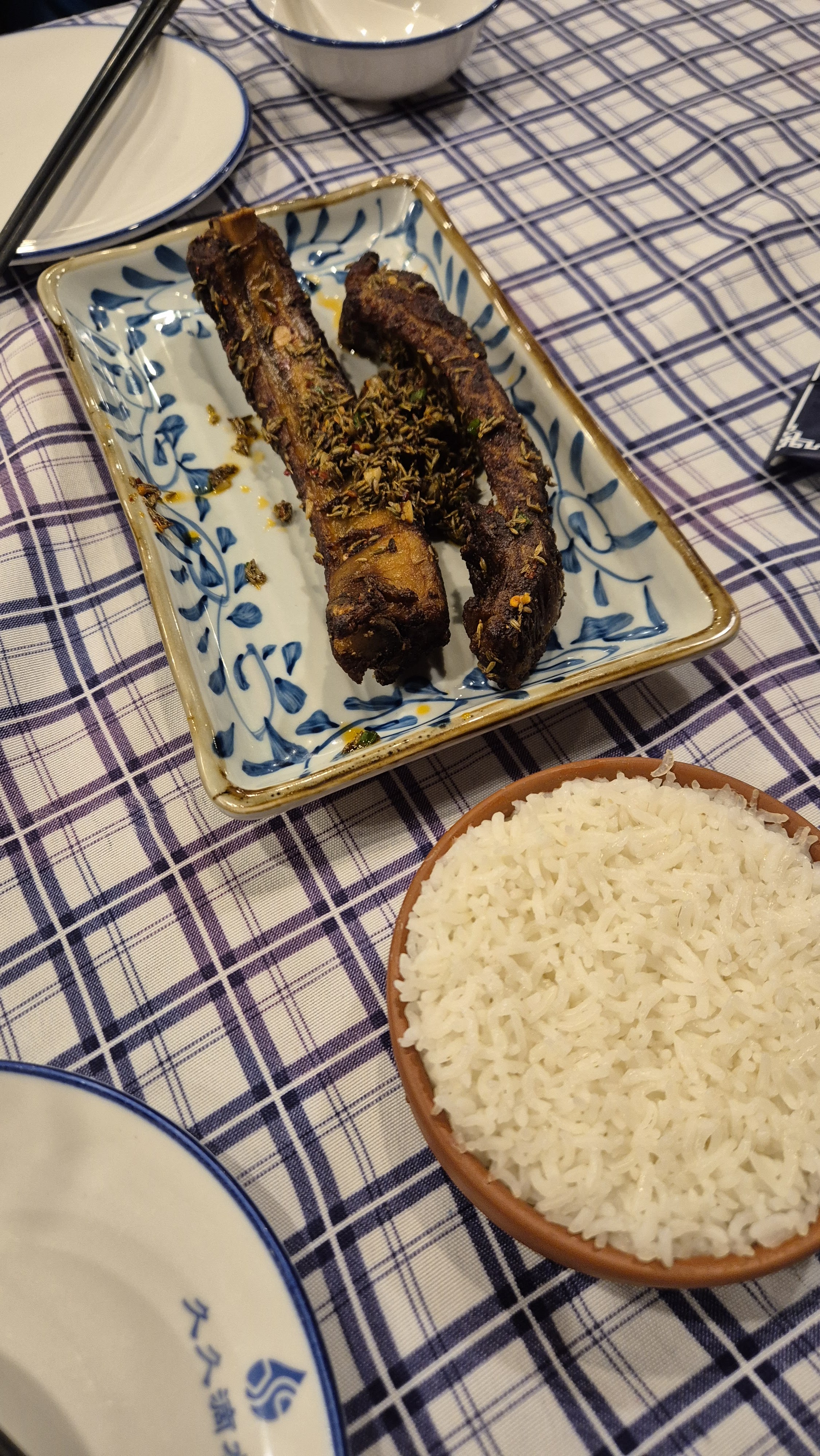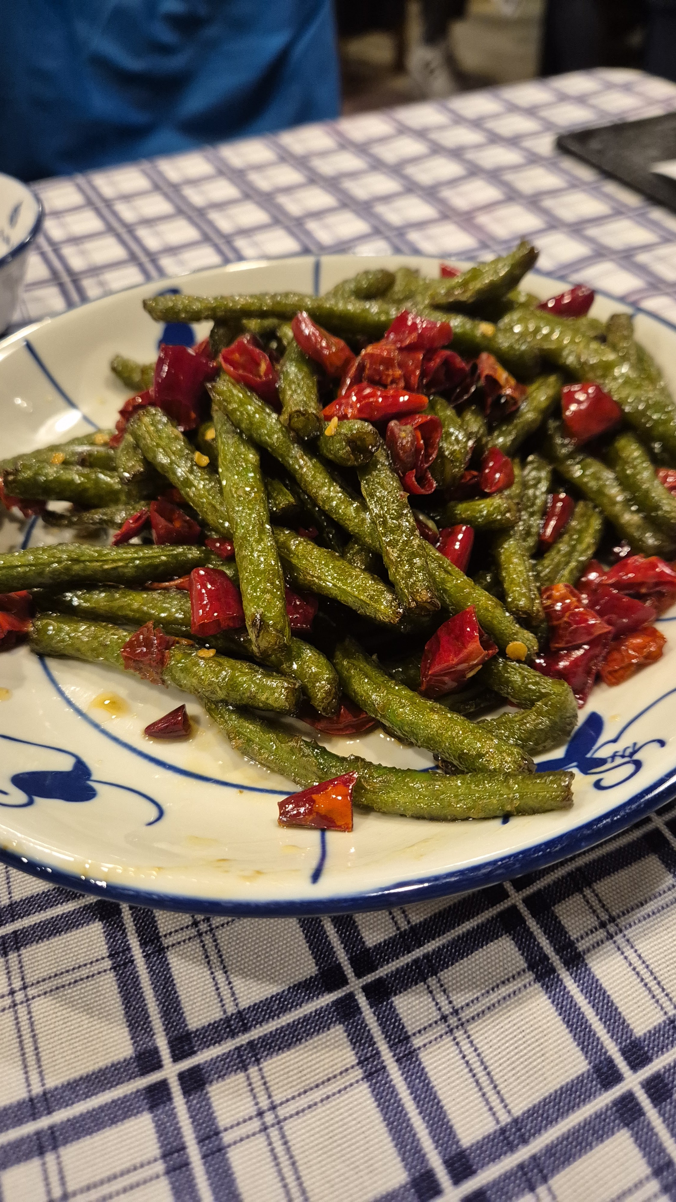 El parque estaba precioso y nos echamos una chelita en un barecito ahí, hicimos un par de errands y fuimos a cenar a un restaurante de comida de la provincia de Hunan (deliciosa, picosa y con mucho comino) donde nos rifamos a pedir, entre otras cosas -costillitas y verduras deliciosas-, una cabeza de pescado en dos salsas de chile que estaba espectacular.