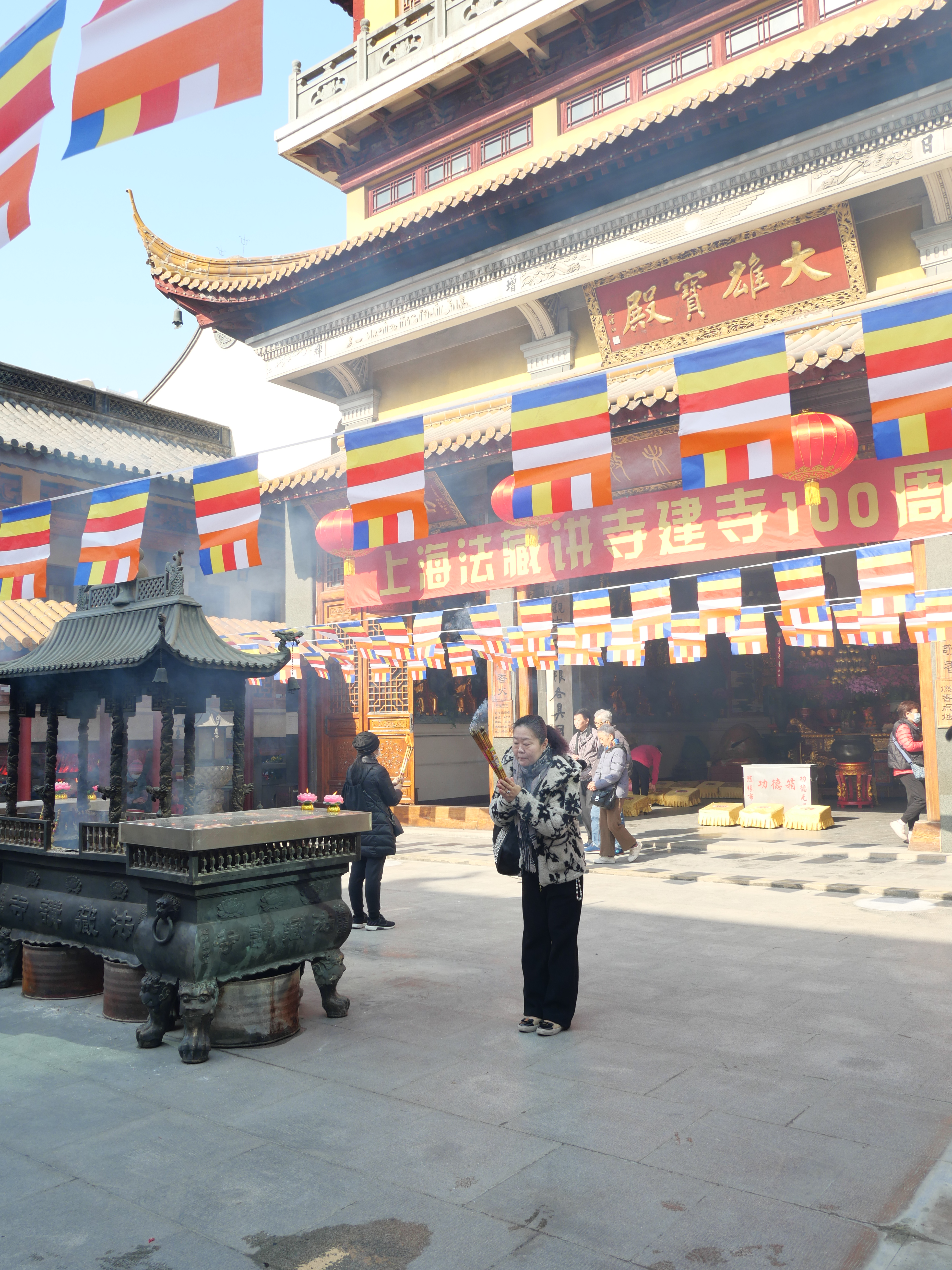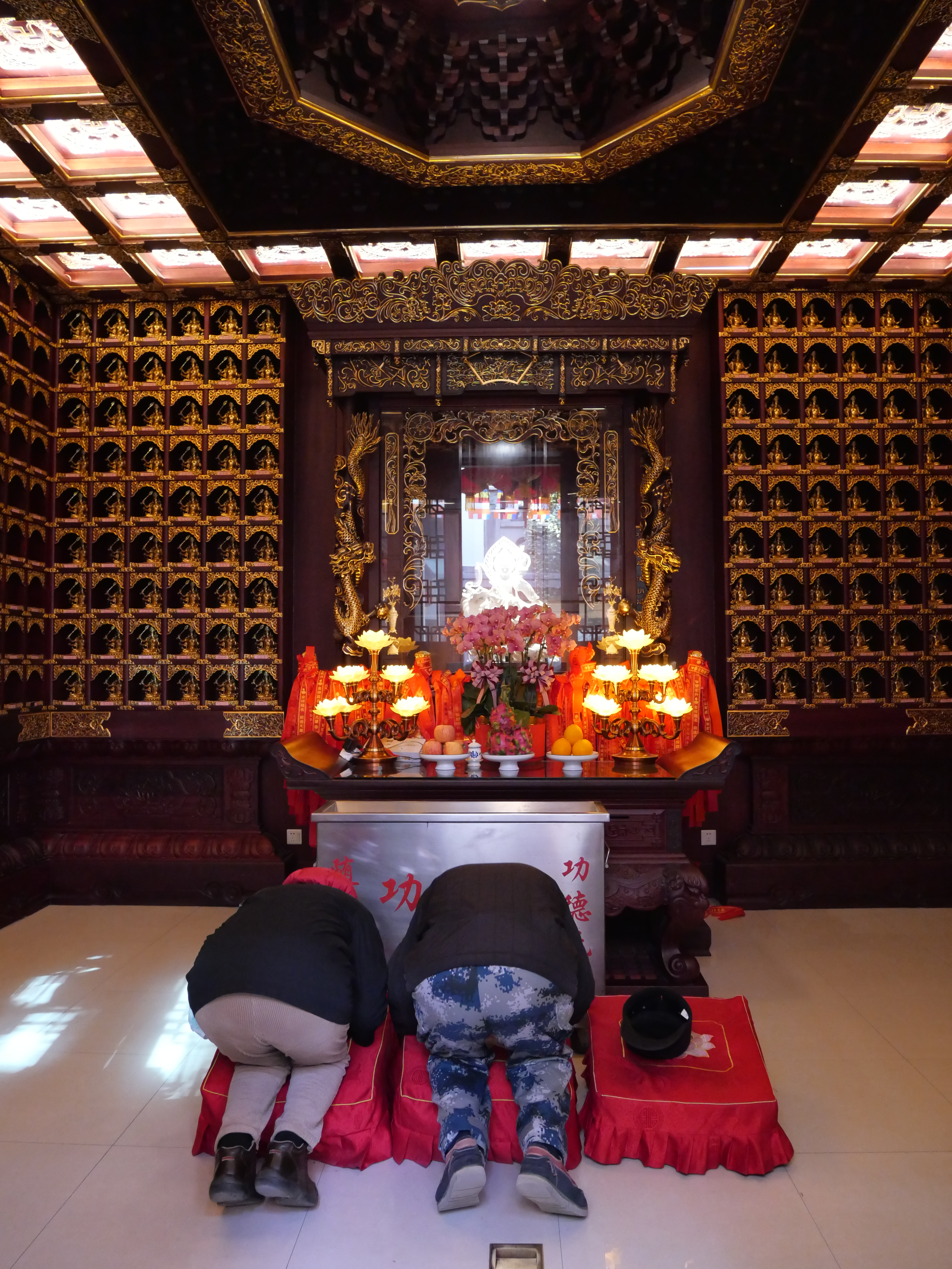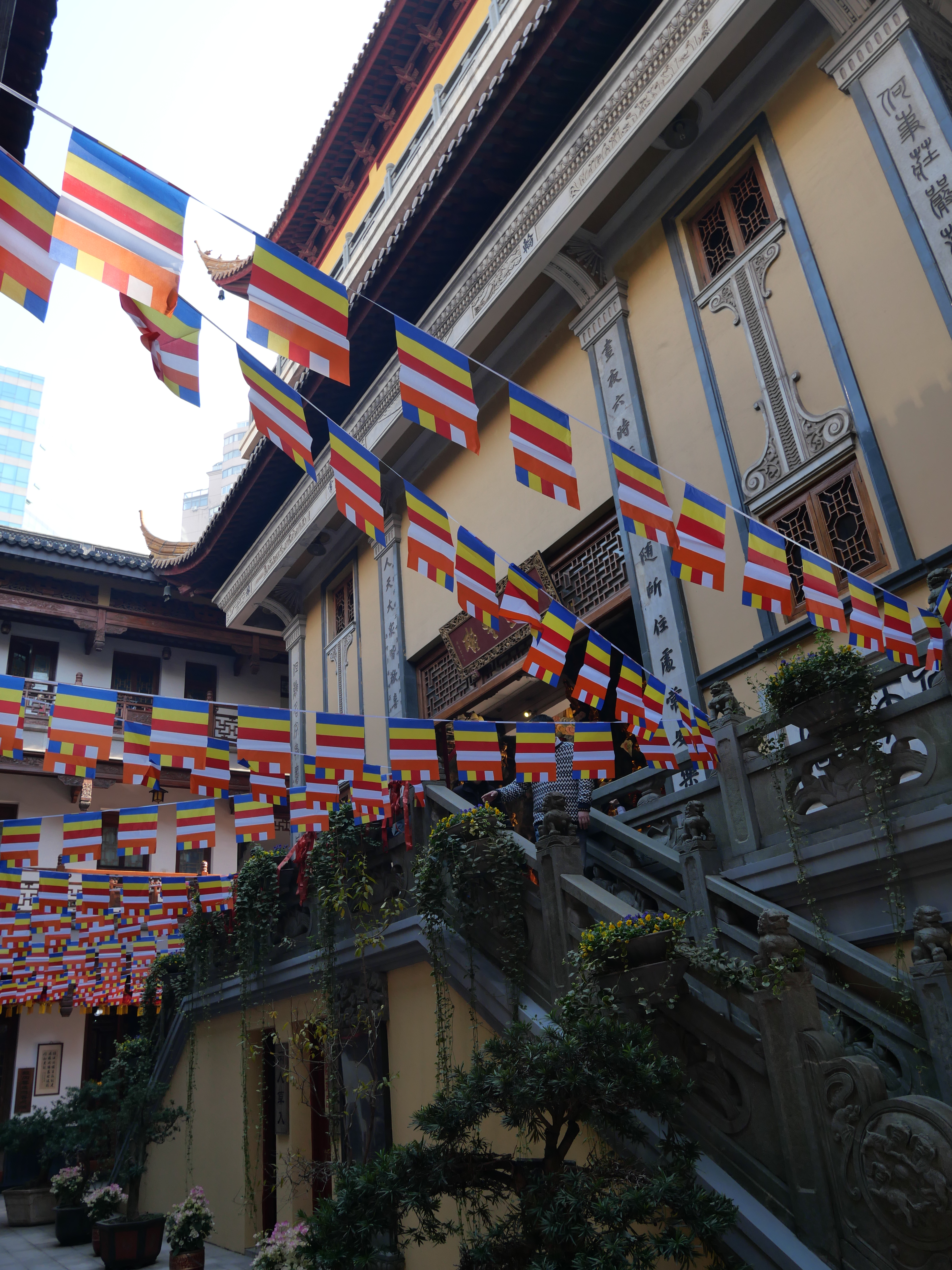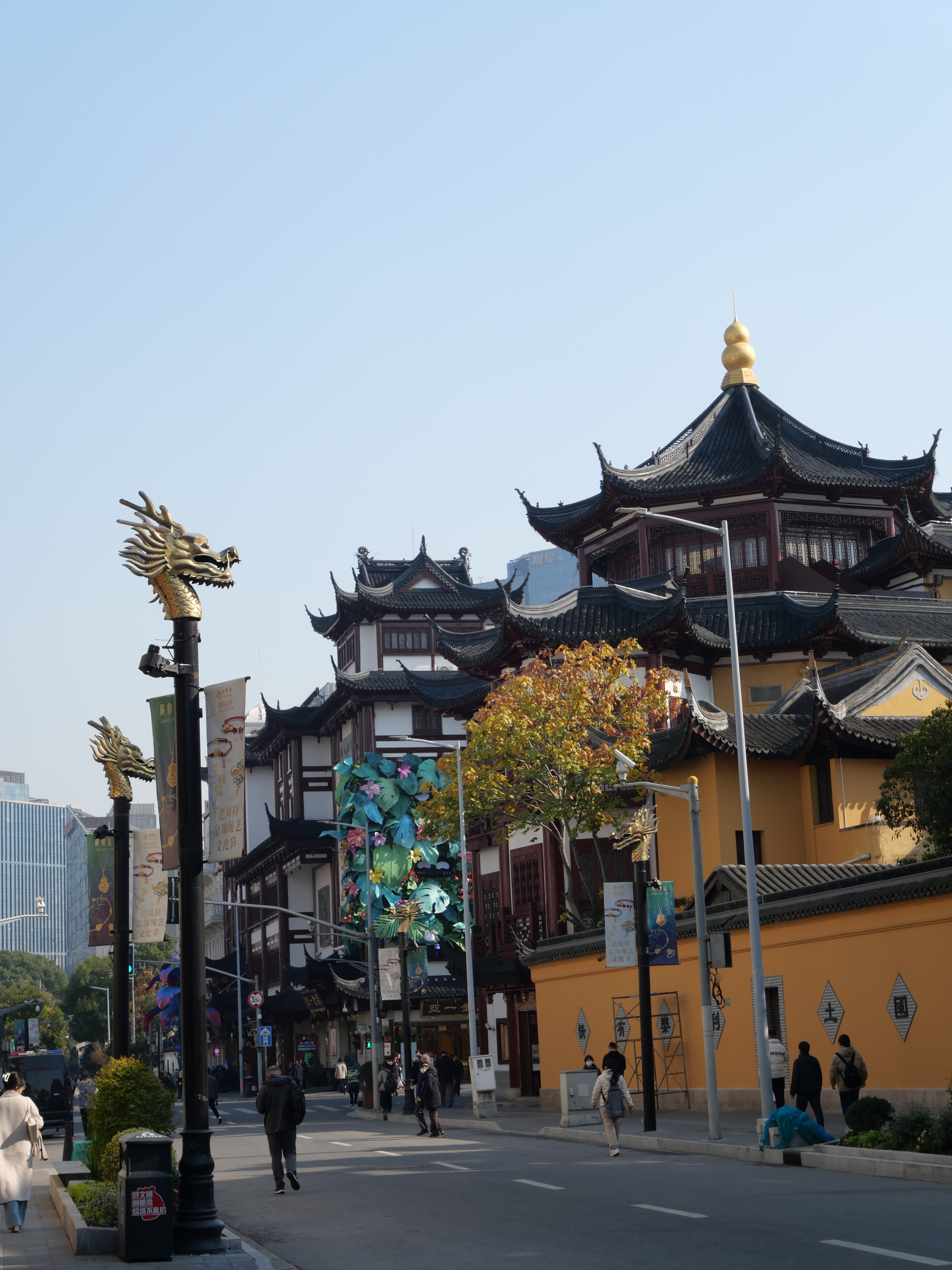 La ciudad es muy caminable y mi recorrido empezó de esa forma, (después de un cafecito) caminé un poco por calles que no había recorrido de mi colonia, después llegué a la zona súper fancy donde los grandes edificios sustituyeron a los conjuntos dilapidados y los Loius Vuitton ocupan espacios revolucionarios. En mi mapita tenía marcado un templito budista, y en algún momento pensé que ya se lo habían echado como lo demás, pero me parecía absurdo y decidí sí buscarlo un poco más (resulta que tenía tantito mal la ubicación). Ahí, para buscar el templo, me animé a usar una de las bicis compartidas, que funcionan maravillosamente; hay millones -no exagero- y las puedes agarrar y dejar en cualquier lugar -todo con mi increíble app de Alipay, de la que luego les platicaré. La bici fue un game changer (ahorita platico de esto).