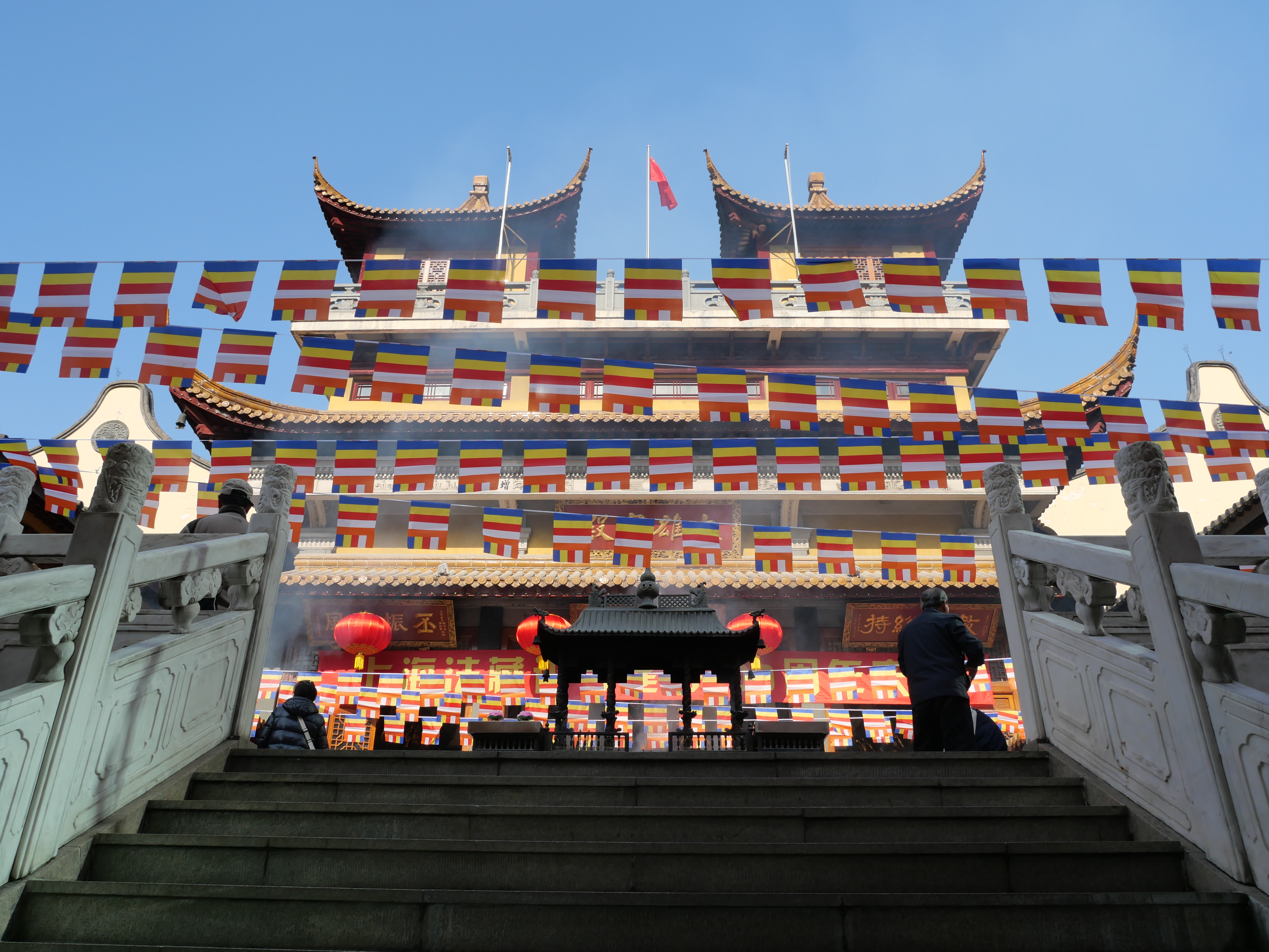 El templo, que al perecer es bastante importante, me dio la impresión de ser un lugar 100% local y lleno de vida: gente rezando, llevando ofrendas, realizando rituales, conviviendo y comiendo. No había turistas (de hecho casi no hay turistas occidentales en la ciudad) lo que siempre es bastante agradable, aunque tampoco a la gente le sorprendía mucho de que estuviera ahí -me imagino que en temporadas de más turismo sí llega uno que otro aventurero-.