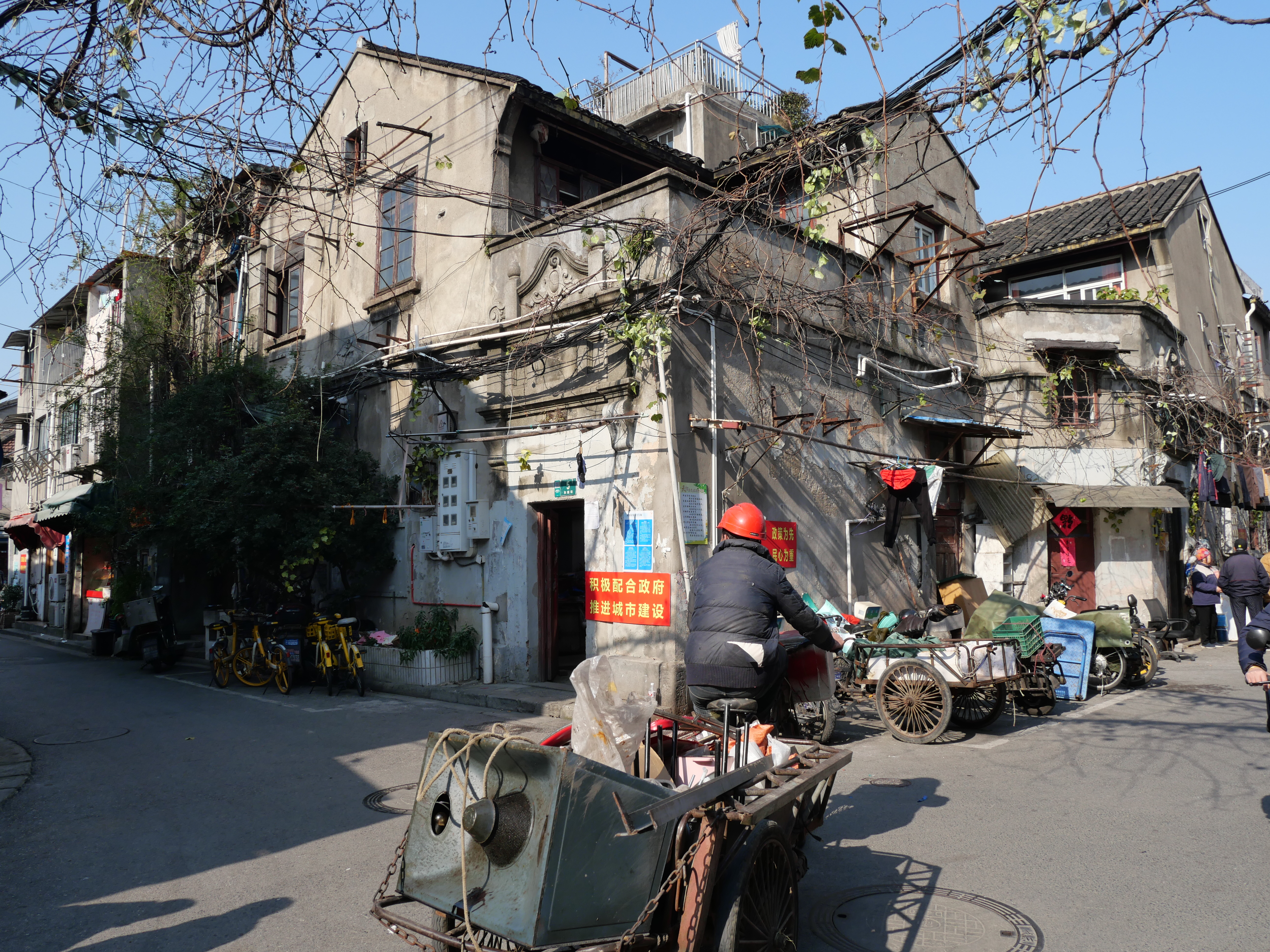 En mi segundo día aquí me encontré con una ciudad muy cambiada -porque ahora sí visité más lugares que recordaba-, una ciudad moderna y pensada para sus habitantes -todos sus habitantes-: accesible, increíblemente bien conectada, limpia, cuidada, sin tráfico, con servicios (baños públicos impecables, centros comunitarios, clínicas de salud, parques con equipo para hacer ejercicio, bicis y baterías compartidas por doquier)… Al mismo tiempo, visité una zona que recuerdo había miles y miles de casas antiguas -“increíbles” pero muy muy muy descuidadas- y que ahora ya fueron reemplazadas por edificios altos, la mayoría residenciales, aunque otros por grandes y lujosísimos centros comerciales y oficinas. Y yo, que romantizo los edificios viejos, tuve que hacer un esfuerzo importante por no odiar esto. En el caso de edificios históricos importantes, los mantienen de alguna u otra forma -a veces irónica-, por ejemplo, la colonia donde se juntaban los revolucionarios es ahora un centro comercial de lujo hermoso; probablemente, en la sala donde escribían manifiestos adaptando las ideas occidentales a la cultura china ahora hay un Louis Vuitton.