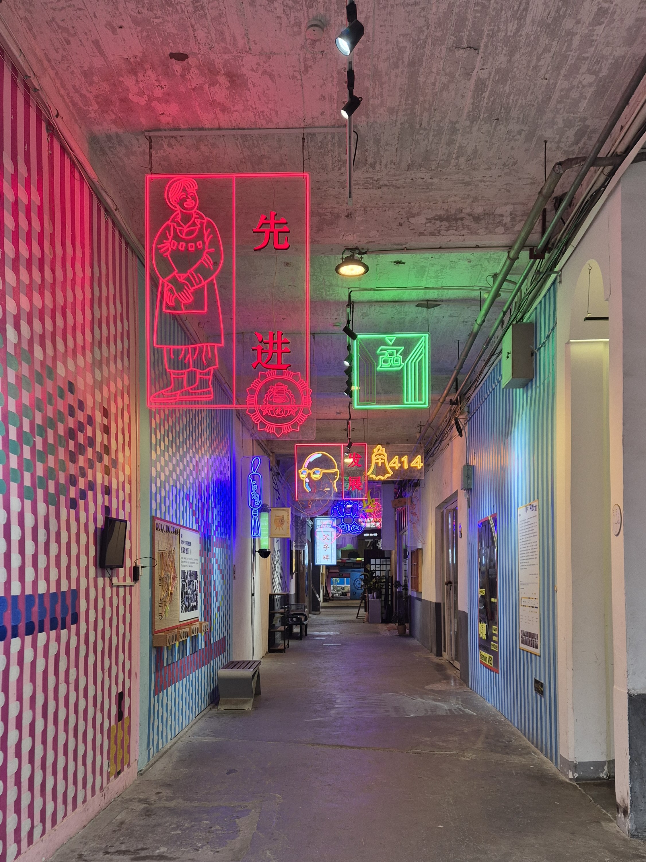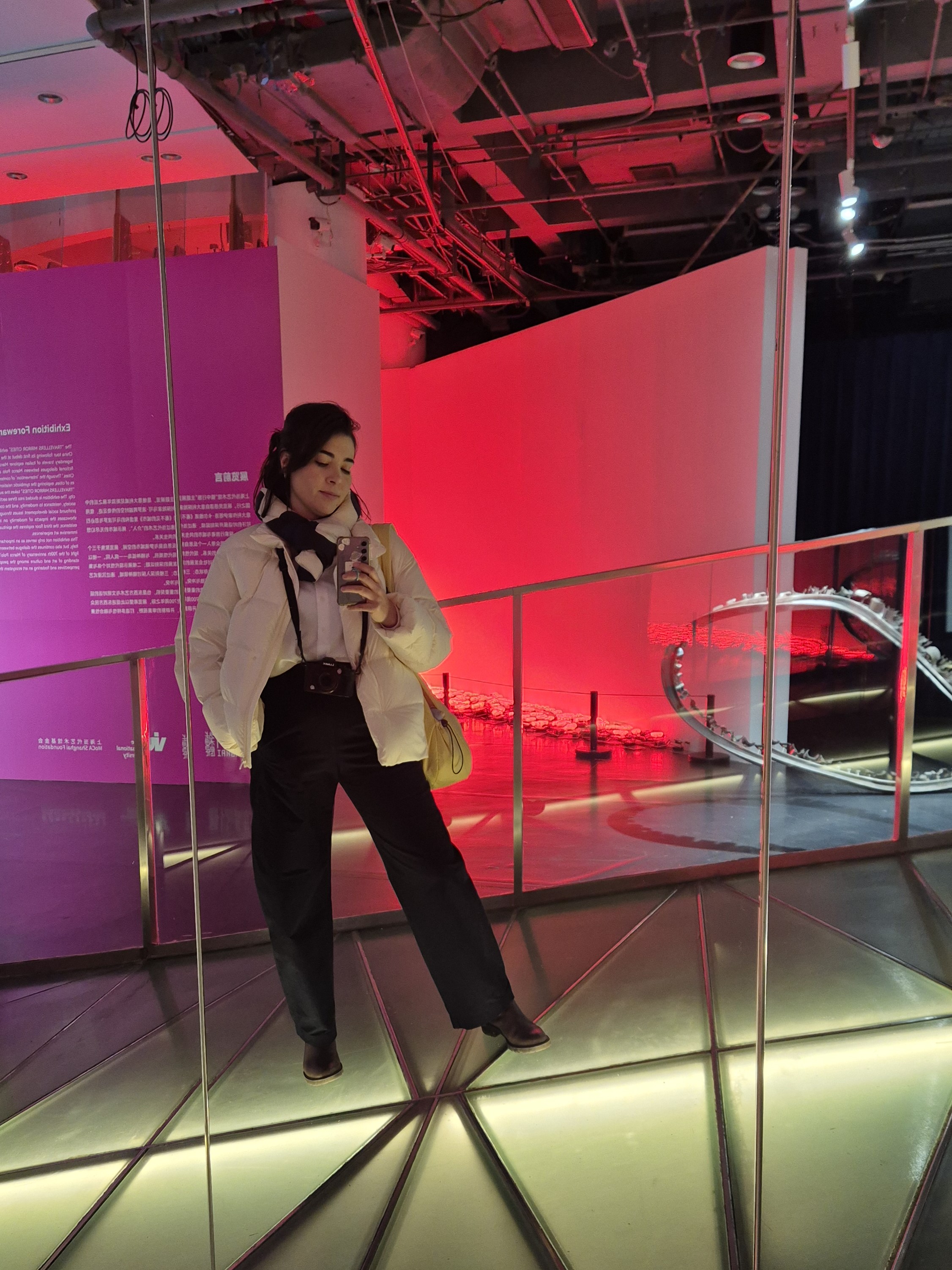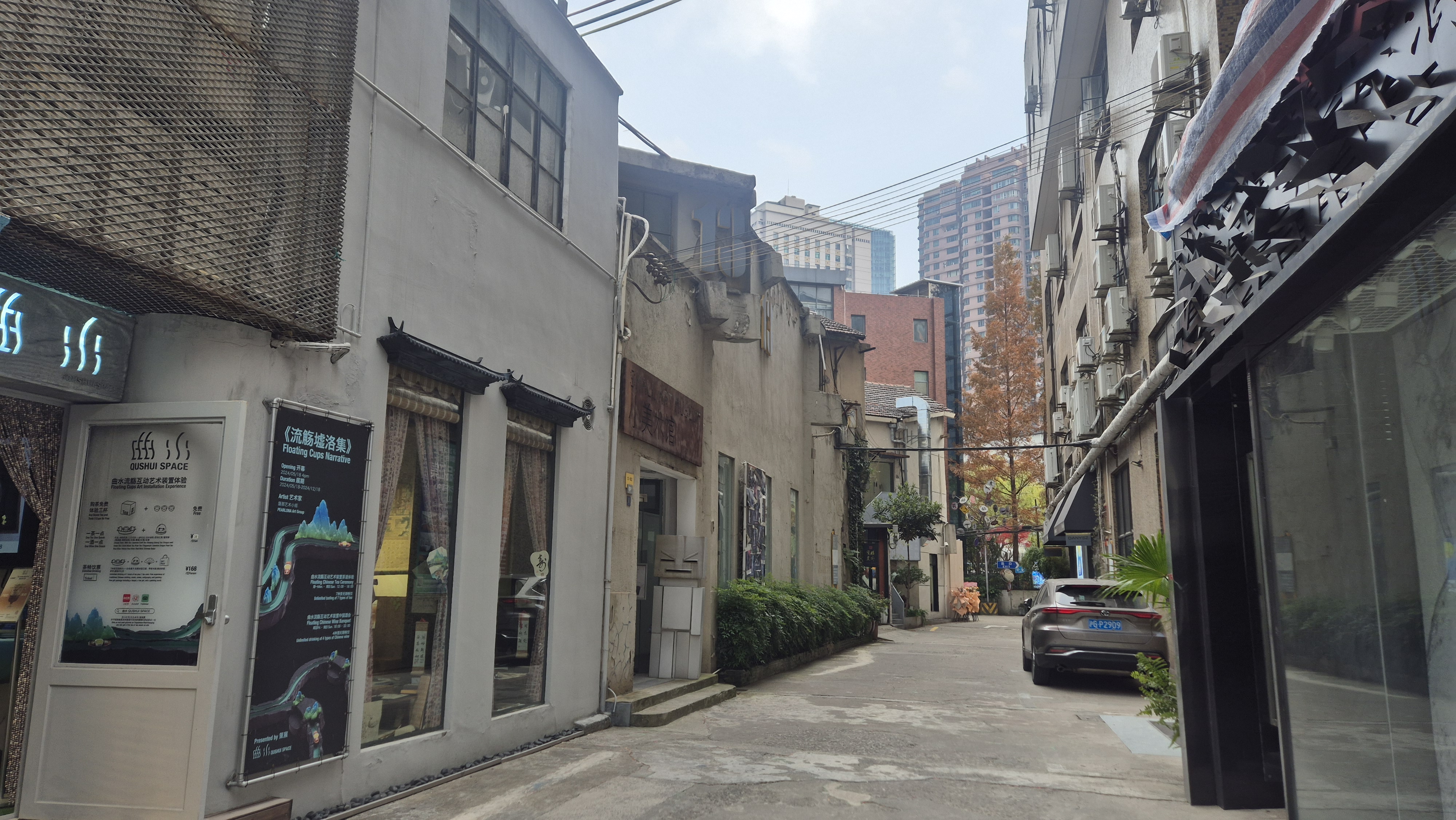 El día se puso algo gris y más frío y amenazaba con llover -aunque el clima había estado perfecto para pasear abrigada-, pero no me detuvo a lanzarme -en metro + bici- a una zona menos céntrica de la ciudad donde hay un espacio lleno de galerías. La zona queda junto a un río secundario que tiene un paseo hermoso, y con la grata sorpresa de que ahí mismo está un edificio (1000 Trees, centro comercial+residencial) que había visto en redes y tenía muchas ganas de conocer -pero por lo visto se me había olvidado mapear-. Caminé un rato por la zona hasta llegar al espacio de galerías, que justo es una colonia de casas viejas reutilizada como centro de arte. Por el día y la hora estaba bastante tranquilo y pude recorrer con calma los distintos espacios – obvio hay unas galerías espectaculares y súper fancy (la mayoría no dejaban tomar foto) y otras más chafitas-.