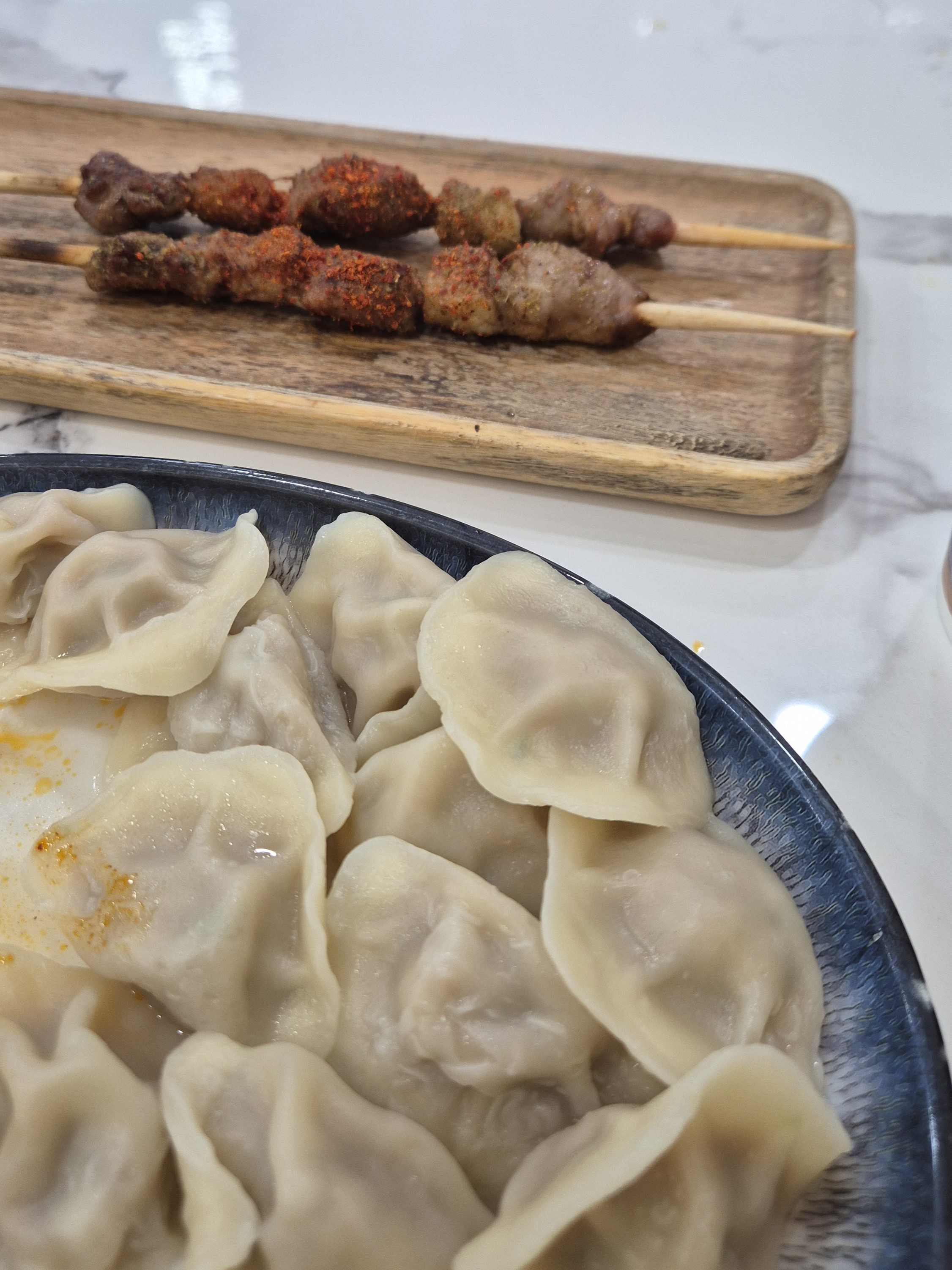 El MOCA es un museo chico para los estándares de acá, que me recordó a nuestro Museo de Arte Moderno. Había una expo hermosa que exploraba la relación entre los viajes y el desarrollo de las ciudades, la resistencia y problemas de la modernidad y la vida urbana. Estuve un buen rato ahí y después fui a comer a un restaurante musulmán (en China hay más de 25 millones de musulmanes y, aunque la mayoría se concentran en las provincias pegadas a Asia Central, se ven restaurantes por todos lados en esta ciudad), y oh, el día que los chinos y los musulmanes se juntaron a hacer comida es un día para recordar. Es la mezcla perfecta entre sabores chinos e influencia árabe (y eso que no hay cerdito – mi carne favorita-). Pedí unos dumplings de res y unas brochetas de carnero, que lo que tienen de sencillo en la foto lo tenían de sabor, con una mezcla de especias que no había probado nunca.
