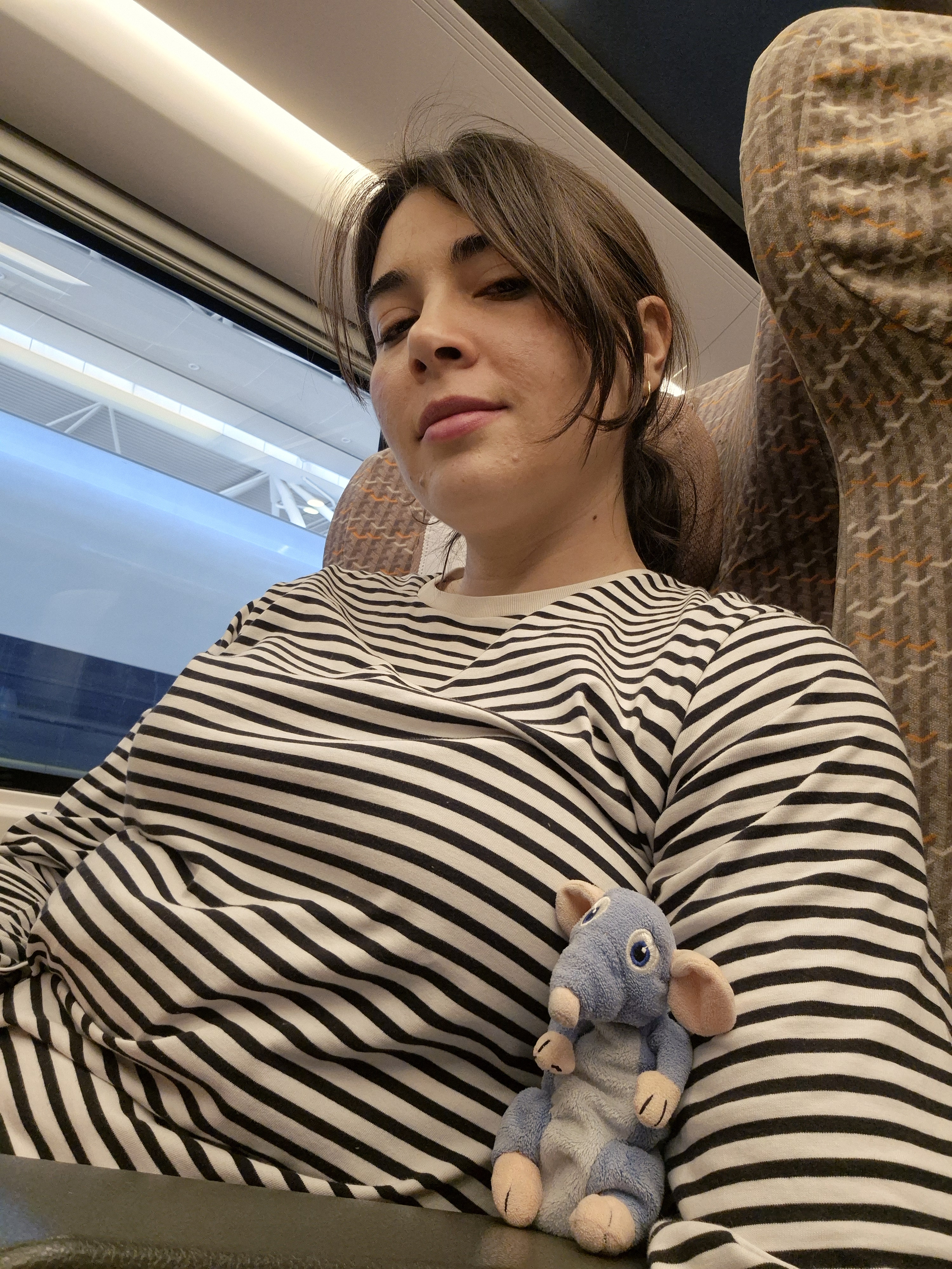 Después de mi despedida era tiempo de, charararán, el tren bala -de las cosas que más me emocionaba de este viaje (me he subido en otros países, pero lo impactante en China es que tienen toda la tecnología de punta y la red más grande del mundo -ahorita vamos a eso-). Me esperaban casi 9 horas para llegar a mi destino en las montañas de Hunan: Zhangjiajie. A la estación llegué en metro, y todo funciona como reloj (ahora diré) chino. La estación es técnicamente un aeropuerto, con dos niveles para llegadas y salidas. En ésta, una de las varias del tipo en Shanghái, hay 29 andenes para tren bala y todo está perfectamente organizado en una salota de espera -a los andenes solo tienes acceso para abordar tu tren, más tipo aeropuerto-, todo impecable y con servicios y todo en chino e inglés – de hecho, dado que habíamos 2 extranjeros en la estación estaba muy agradecida de que hagan tanto esfuerzo de que nos podamos entender. Comí en una cafetería deli, más que por hambre por miedo a no saber cómo funcionaba el tema de la comida en un tren donde iba a estar una vidas. Y ya, avisan que va a salir tu tren – y obvio está en las pantallas-, te formas en tu filita para bajar a los andenes, checas tu ID en una maquinita con reconocimiento facial y entras. No hay boleto, tu ID es tu boleto (incluyendo el pasaporte para extranjeros, aunque tenemos una filita especial para gente que requiere asistencia donde sí nos ayuda un humano porque, supongo, estamos bien bobos.)