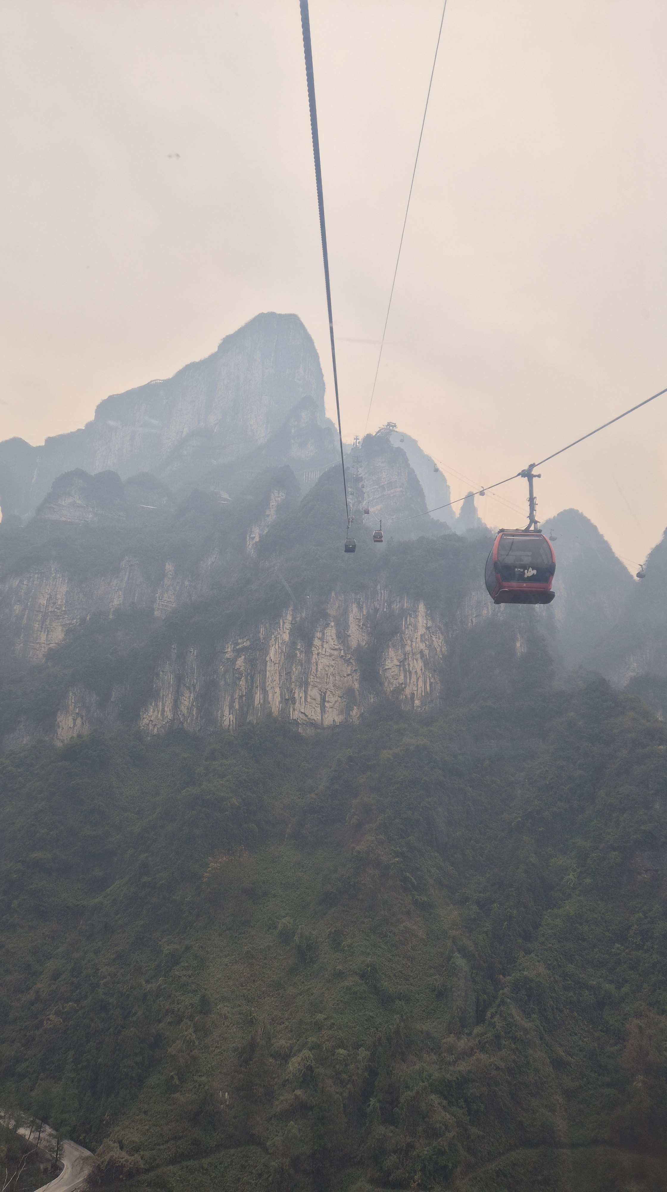 Tian Men es un monstruo, entre montaña y meseta, con unos acantilados de locura y a menos de que seas cabra, no veo cómo se puede subir ese lugar (hay rutas, pero digamos que no para cualquiera). Los chinos se las ingeniaron y construyeron el teleférico más largo del mundo, donde en un recorrido de 7.5 km subes 1.3km (con pendiente de hasta 37 grados). No pueden entender lo que fue esto, 15 minutos de recorrido y crees que ya llegaste y resulta que llegas a una estación intermedia donde el teleférico agarra fuerza para subir el último cacho, con una inclinación de locura. Y alguien me va a tener que explicar la física e ingeniería atrás de esto, porque para mi fue una experiencia casi sobrenatural.