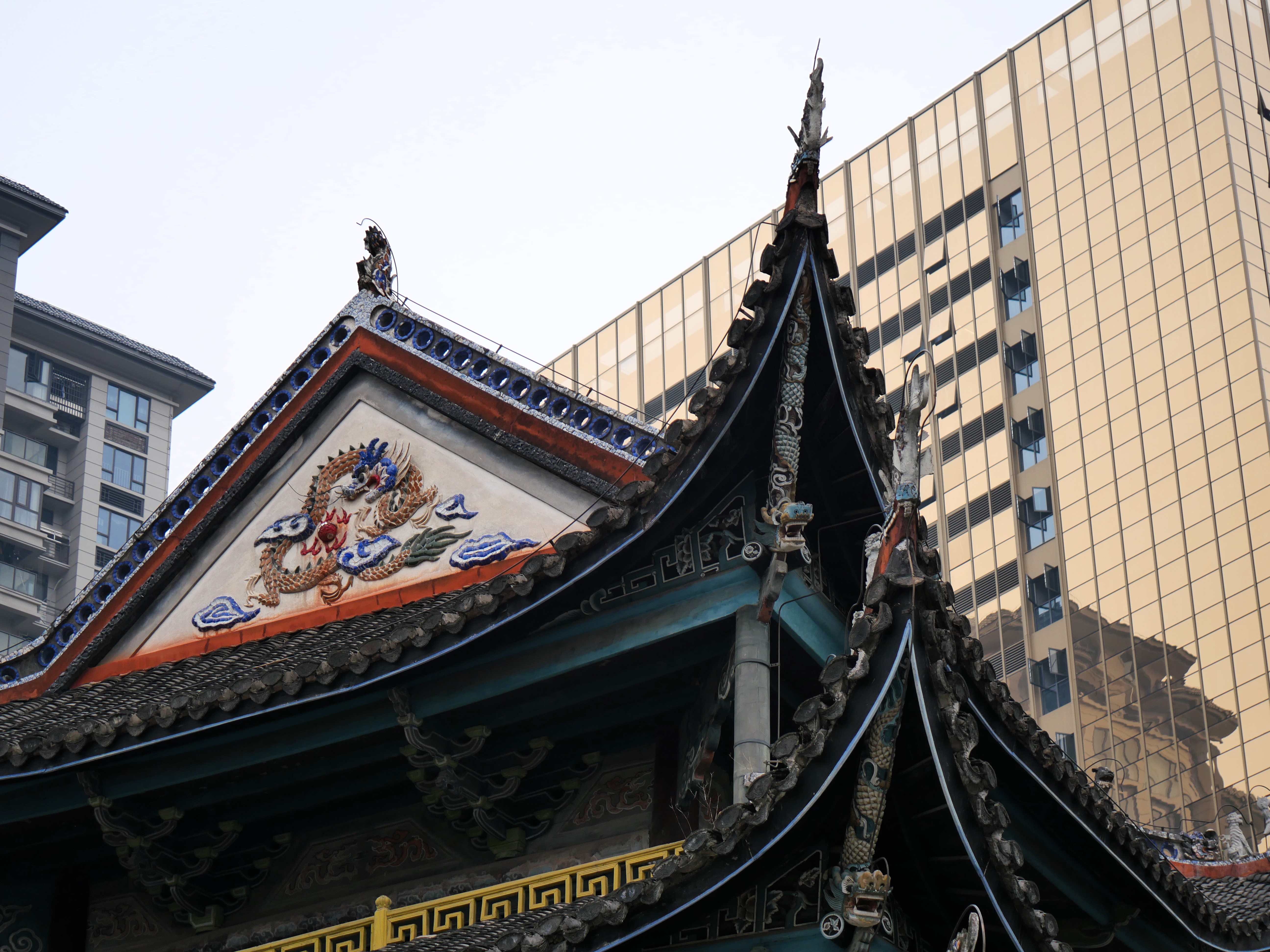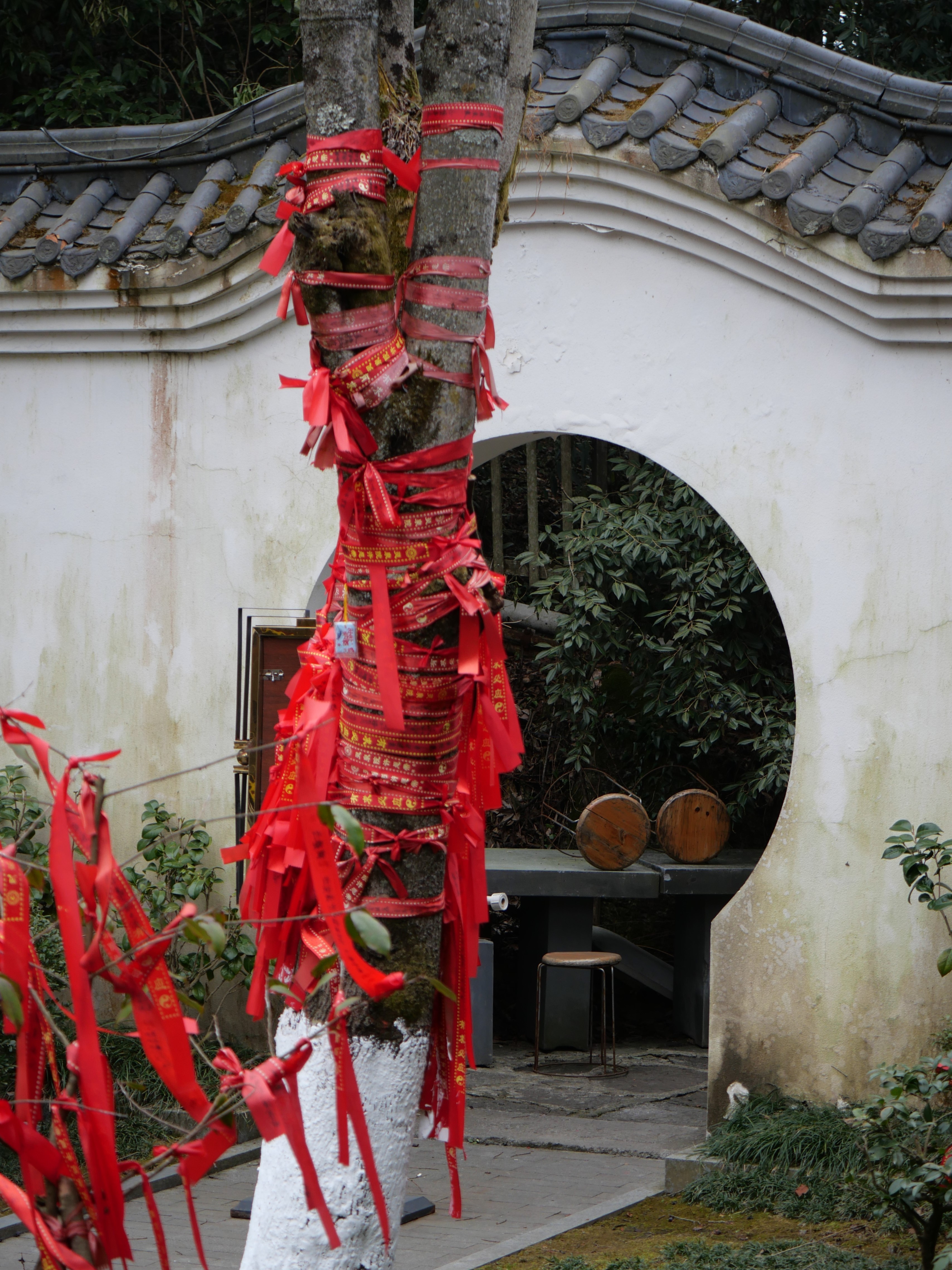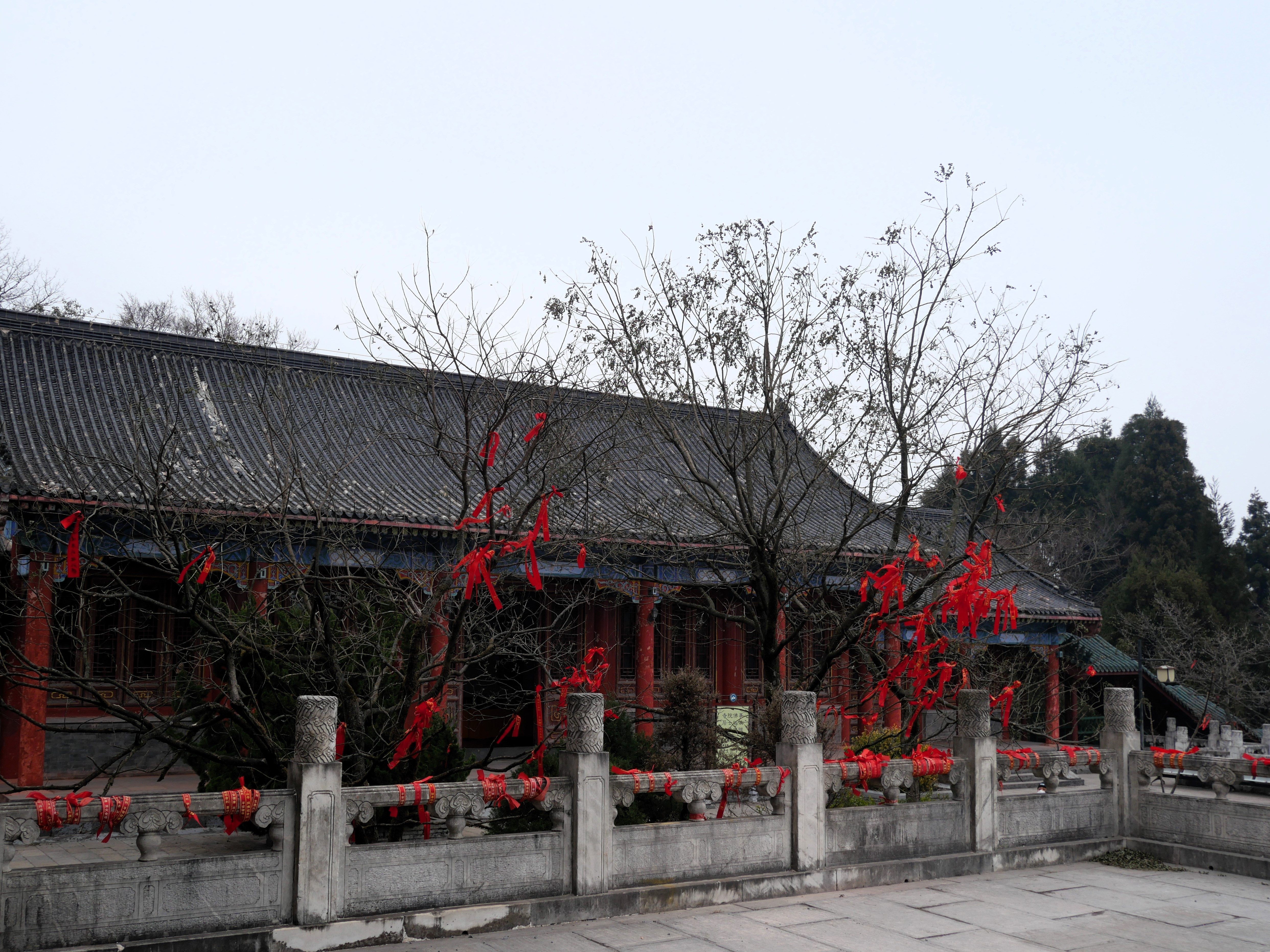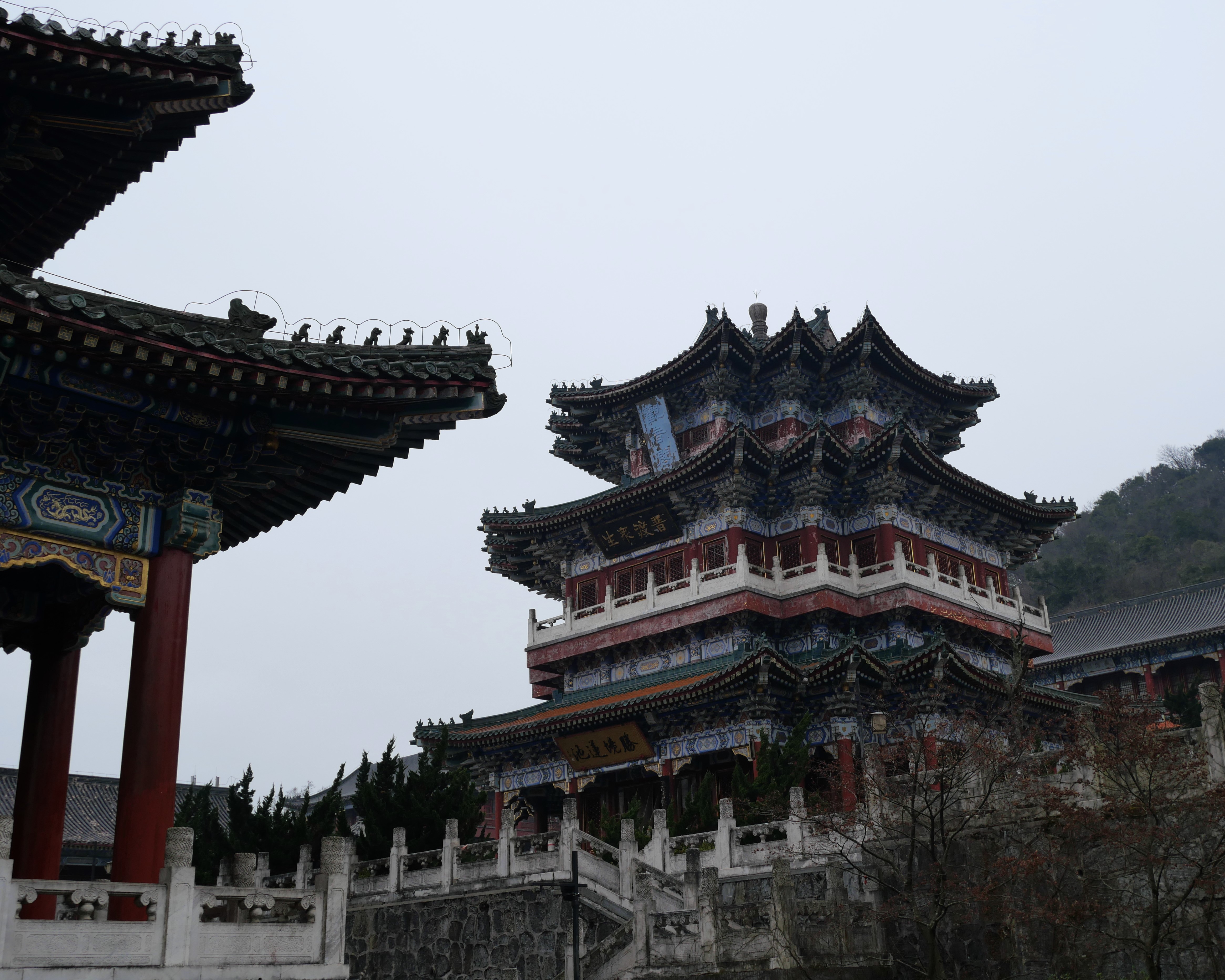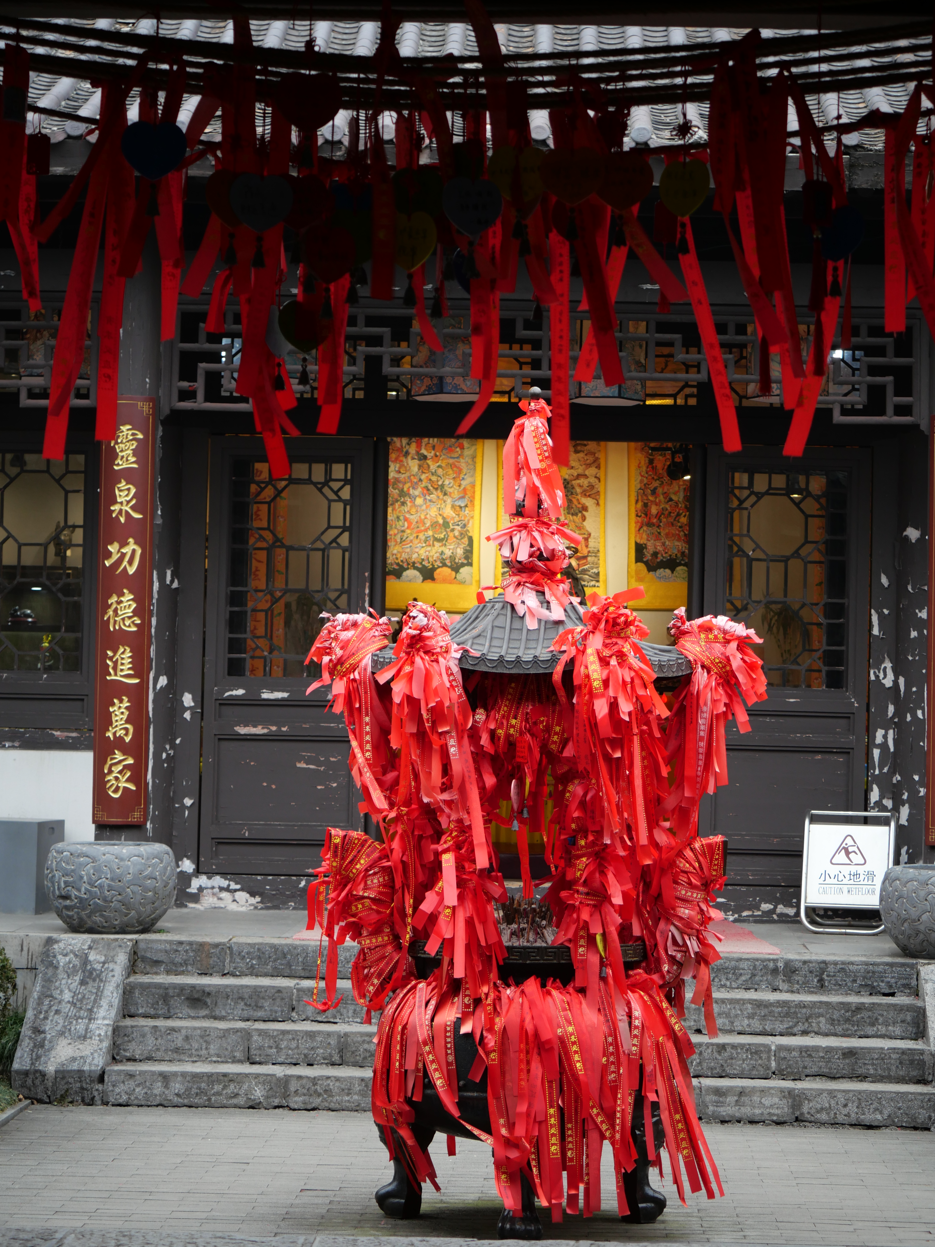 Varios kilómetros de recorrido por estas rutas (muy extraño, todo está súper señalizado menos la distancia) llegué al templo y ¡qué lugar! Los templos budistas en China tienen ciertos detalles estéticos que son nuevos para mí y me fascinan. El uso de azules y muchos remates y detallitos, pero sin llegar a la atascadés dorada de otras culturas budistas. Habíamos muy pocas personas, hacía un frío de locos y con las nubes todo daba una sensación bastante eerie. Hermoso.