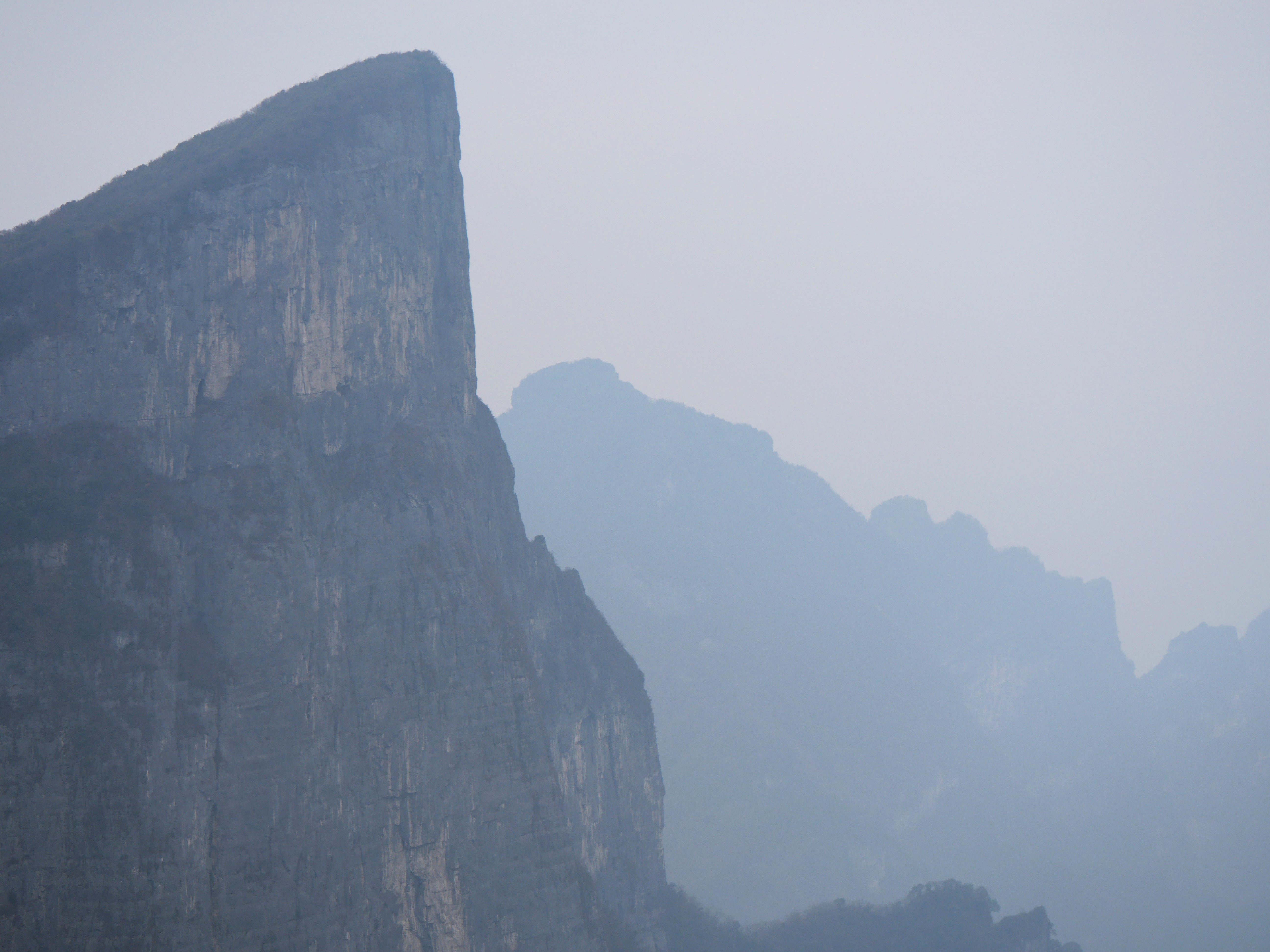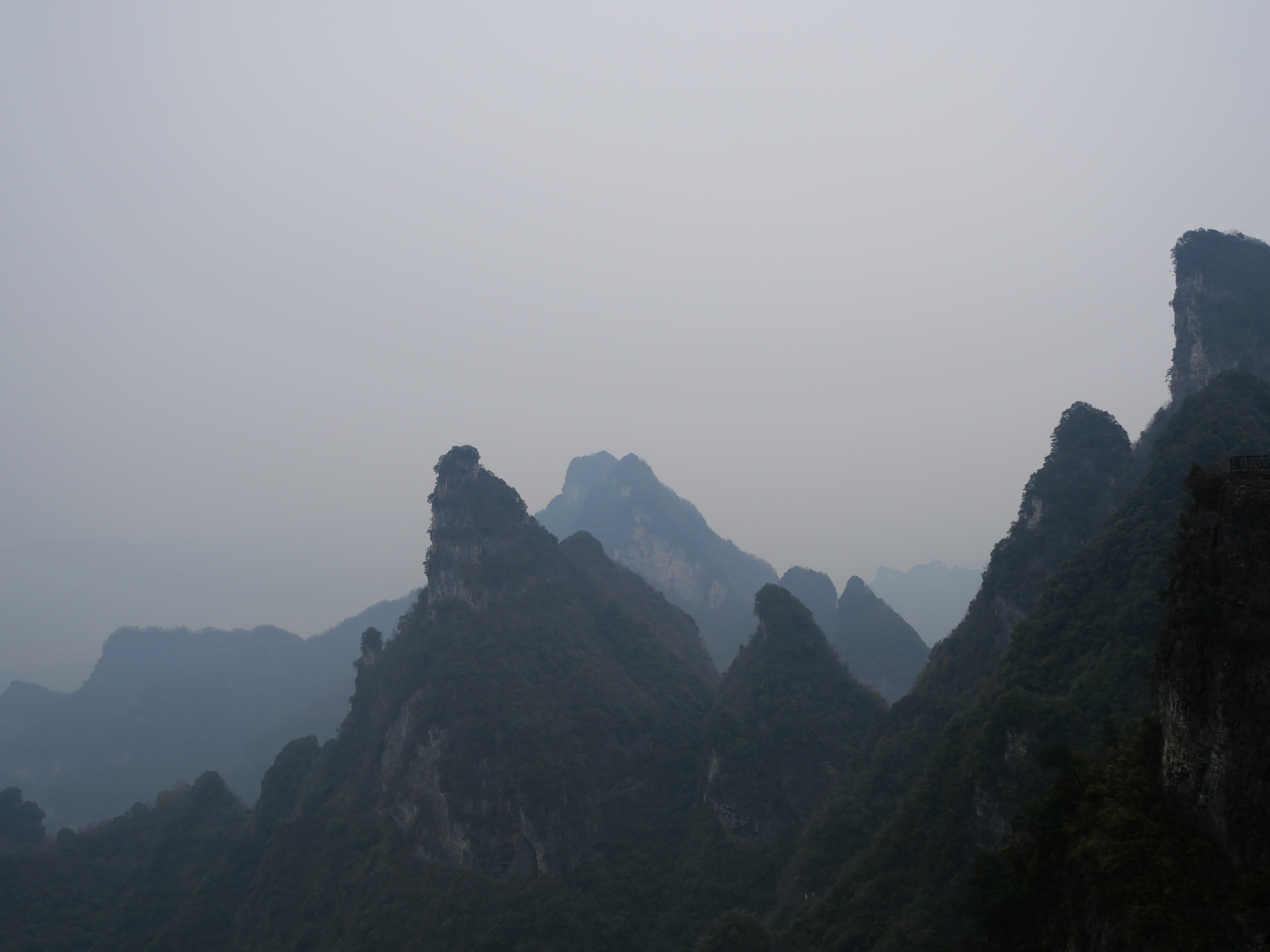 Que una persona con mis gustos y preferencias dedique un par de días de su preciado viaje a salir a la montaña, ya es un indicador de que la montaña tiene que tener algo de especial y mis expectativas de este lugar eran bastante altas, y les voy adelantando, que, a pesar del día gris y frío, no decepcionó. Como platicaba en mi post anterior, Zhangjiajie está en las faldas de una serie de parques naturales, el más cercano Tianmen Shan (Montaña de Tianmen “Puerta al cielo”). Tan cercano, que el punto de entrada al parque está técnicamente adentro de la ciudad. Y nótese el “técnicamente” porque realmente ahí es donde se empieza a notar que los chinos están locos: la infraestructura para llegar al parque.