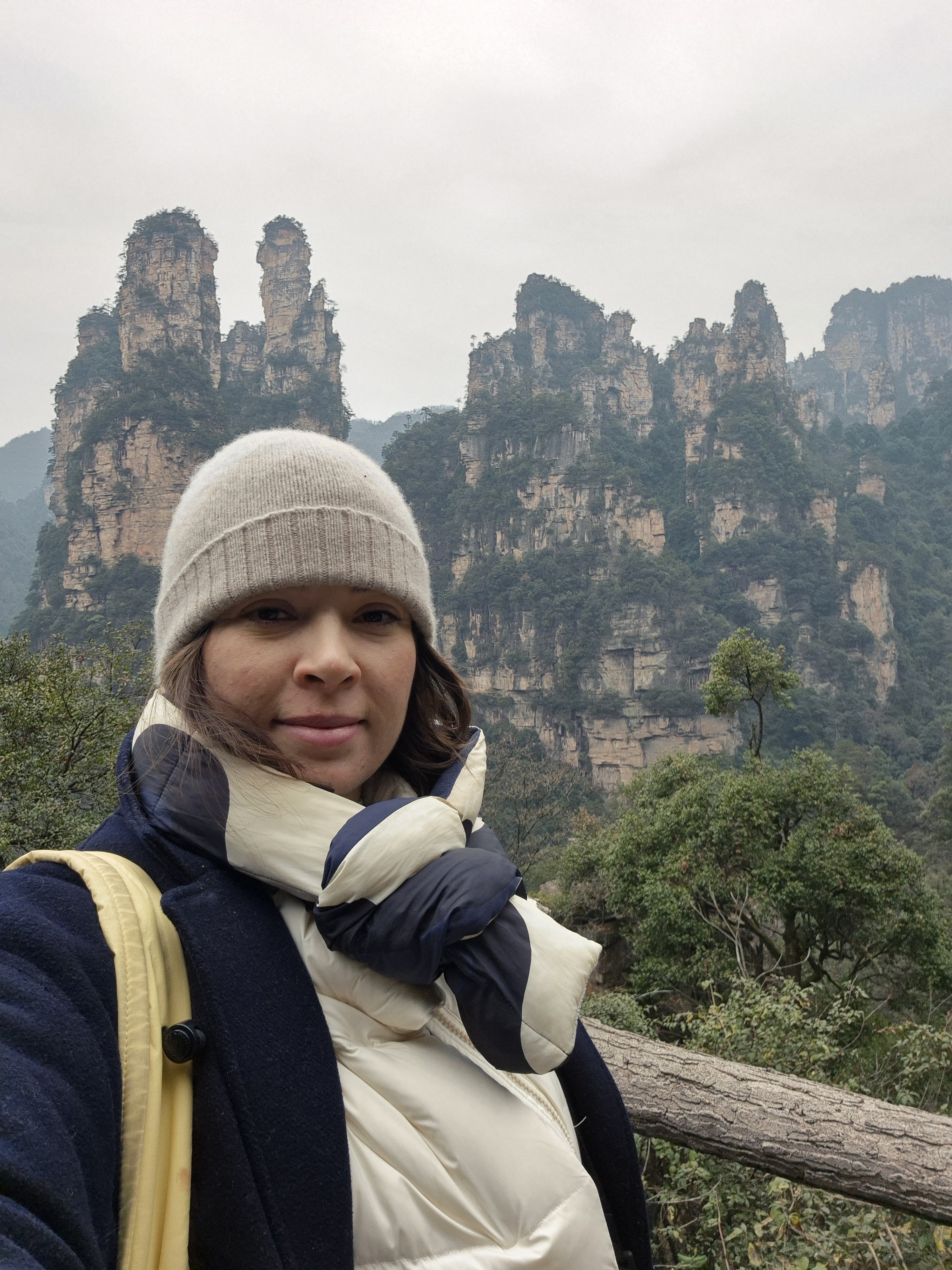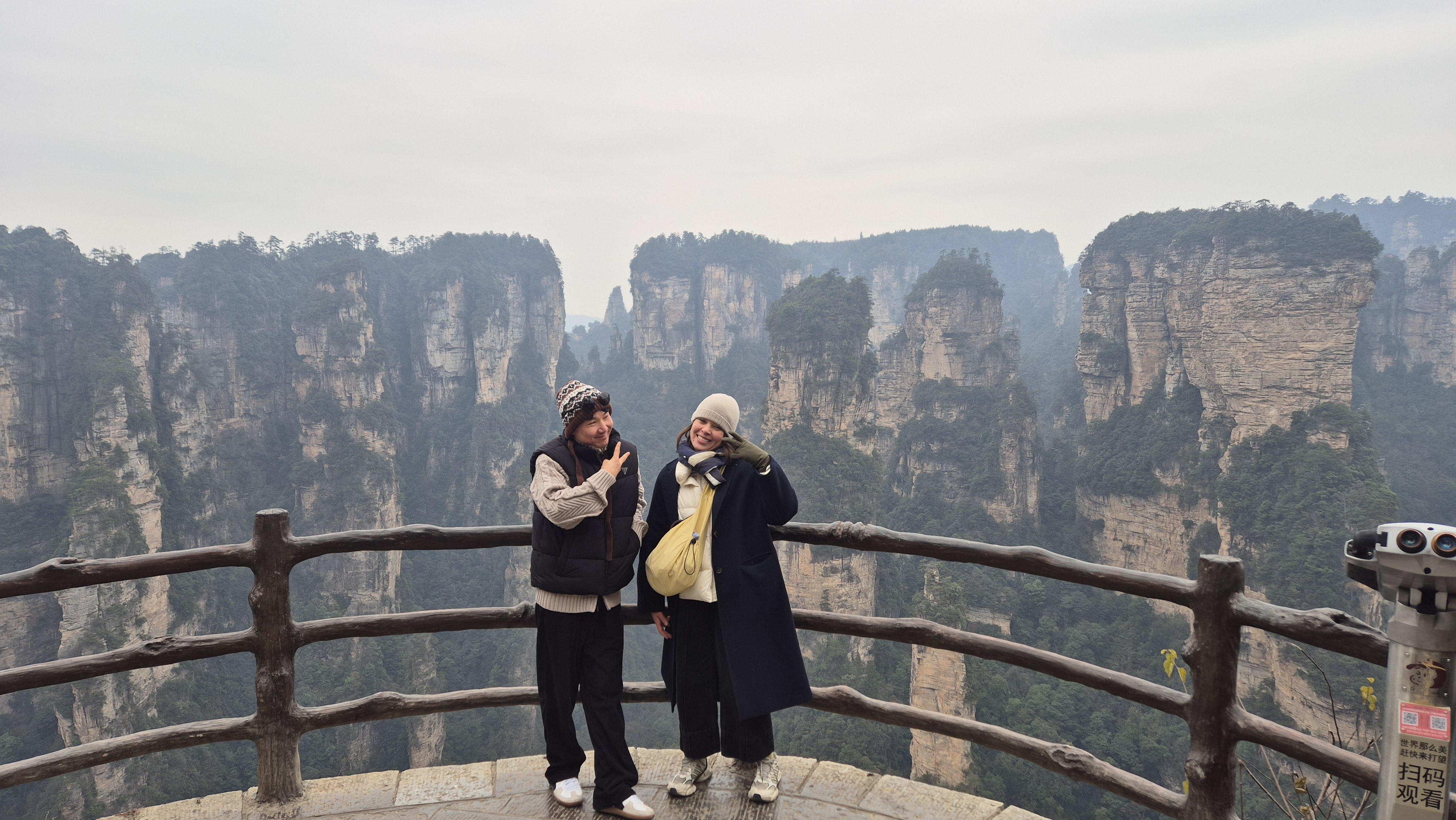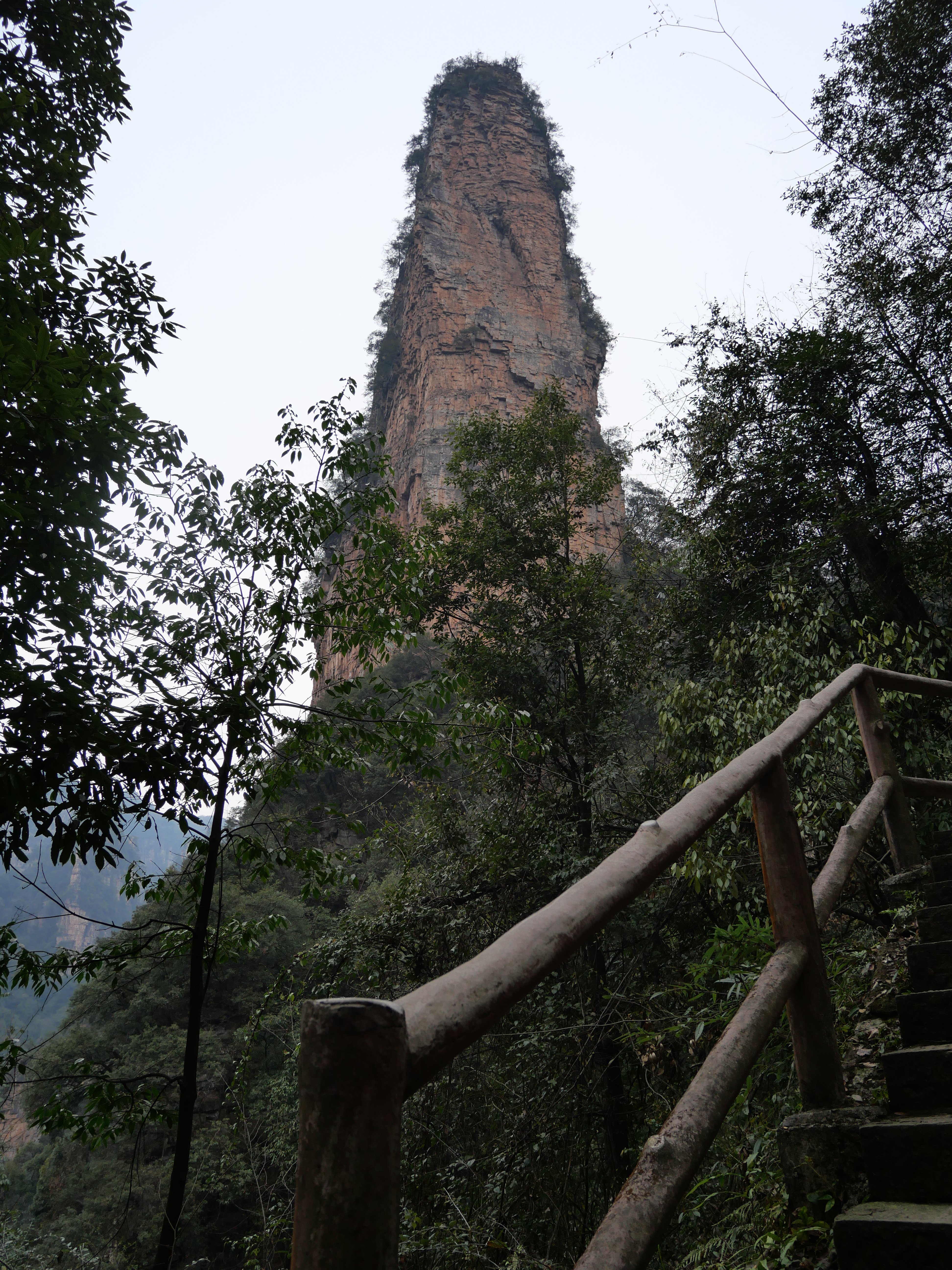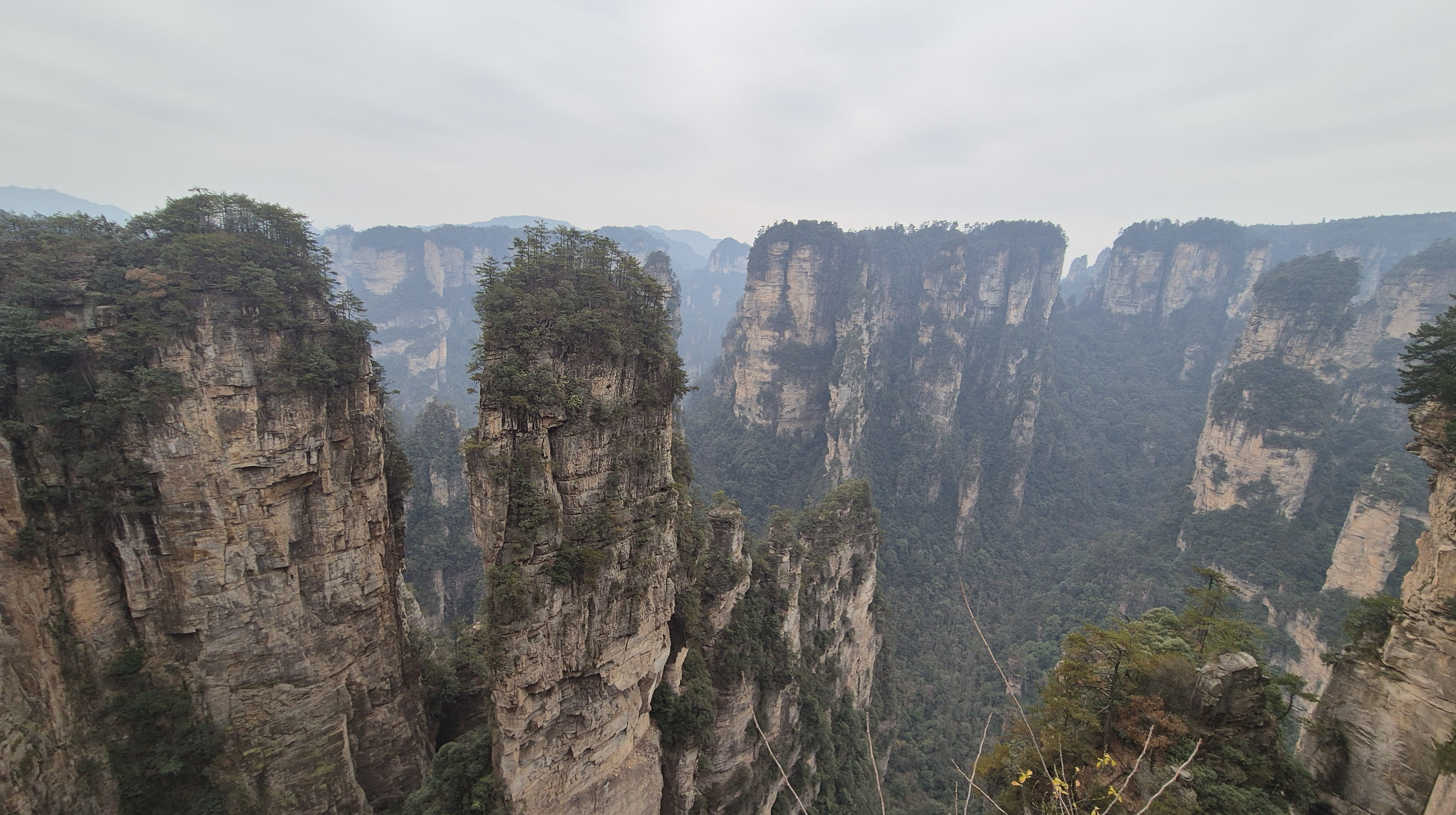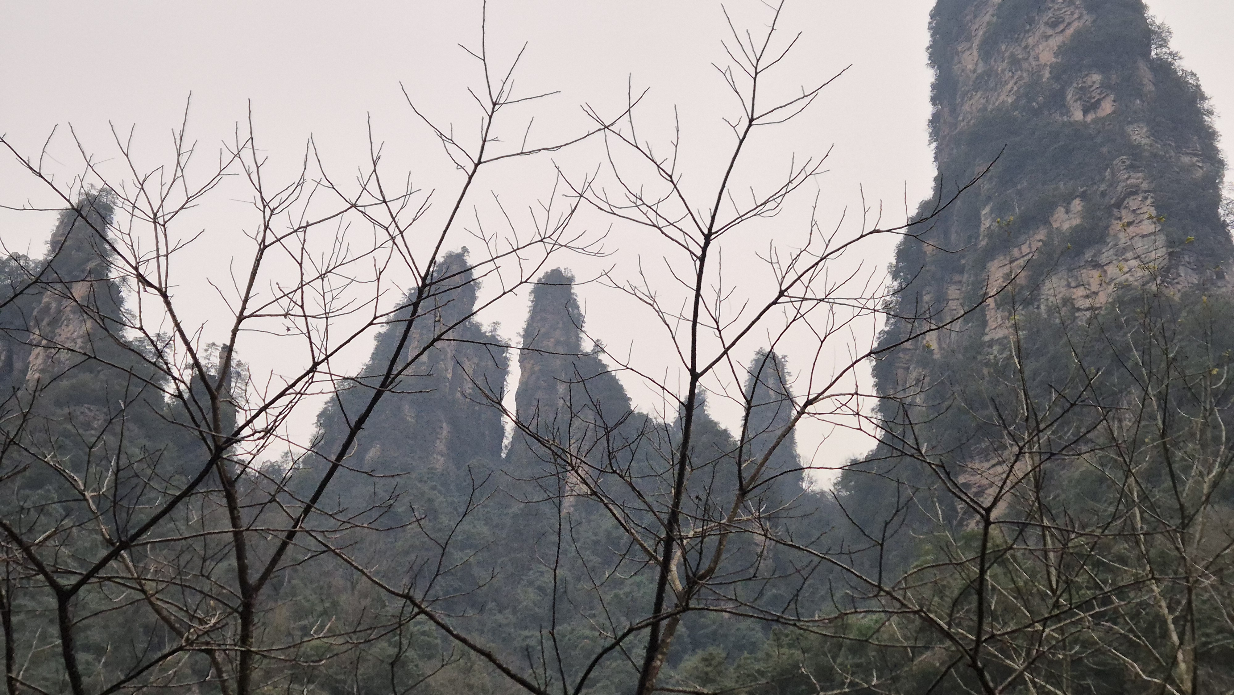La montaña Tianmen es una locura, pero a lo que uno verdaderamente va a Zhanjiajie es al Zhanjiajie National Forest Park, un lugar que, les puedo confirmar, amerita cruzar medio China para visitarlo. Este parque es la inspiración para el mundo de Avatar, entonces se pueden dar una idea de la belleza de lugar. Y de nuevo, el invierno puede que no sea su temporada más frondosa y el día estaba muy gris -en un buen día en verano ha de ser más que espectacular-, pero igual ha sido de las cosas más impactantes que he visto y, como plus, el parque estaba súper tranquilo, lo que permite visitar sin gentíos las miles de cosas que hay por hacer -porque no me quiero ni imaginar los gentíos en un buen día de verano-.