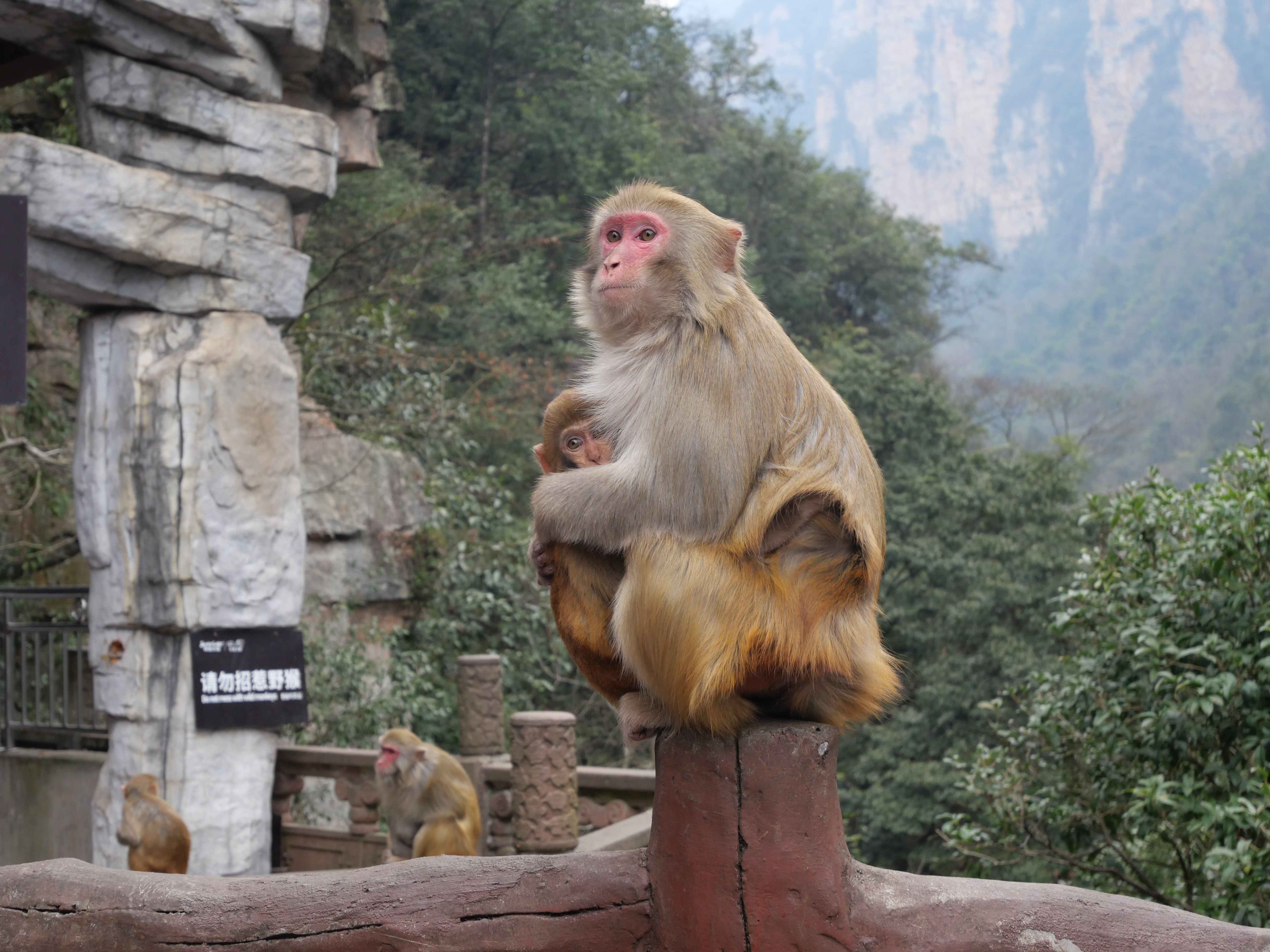 Los chinos son unos maestros de la organización y eso hace verdaderamente fácil visitar Zhangjiajie. El parque es enorme (48 km cuadrados) y no pueden entrar coches, entonces tienen un sistema de camioncitos con rutas que te van dejando en distintos puntos de interés. En estos puntos hay distintas actividades, unas accesibles para todos (sillas de ruedas, carriolas, etc., por ejemplo, un trenecito que te pasea por una ruta muy linda), rutas en caminos predefinidos -unos más rudos que otros pero todos con miradores y puntos de servicio- y hikes para gente más exploradora que ya va en plan naturaleza. También hay actividades con la comunidad que vive en el parque, como ver plantíos de té y de arroz, pero no en temporada invernal. Casi todo está en inglés y en general se entiende bastante bien el sistema -si no, pues medio preguntas y medio te dicen y listo-. En las paradas principales hay estaciones de servicio con comida (unas hasta con KFC -les fascina acá-), baños impecables, servicios de emergencia, etc. En el resto solo hay una banca para esperar al camión. ¡Ah! y hay muchísimos macacos adorables.