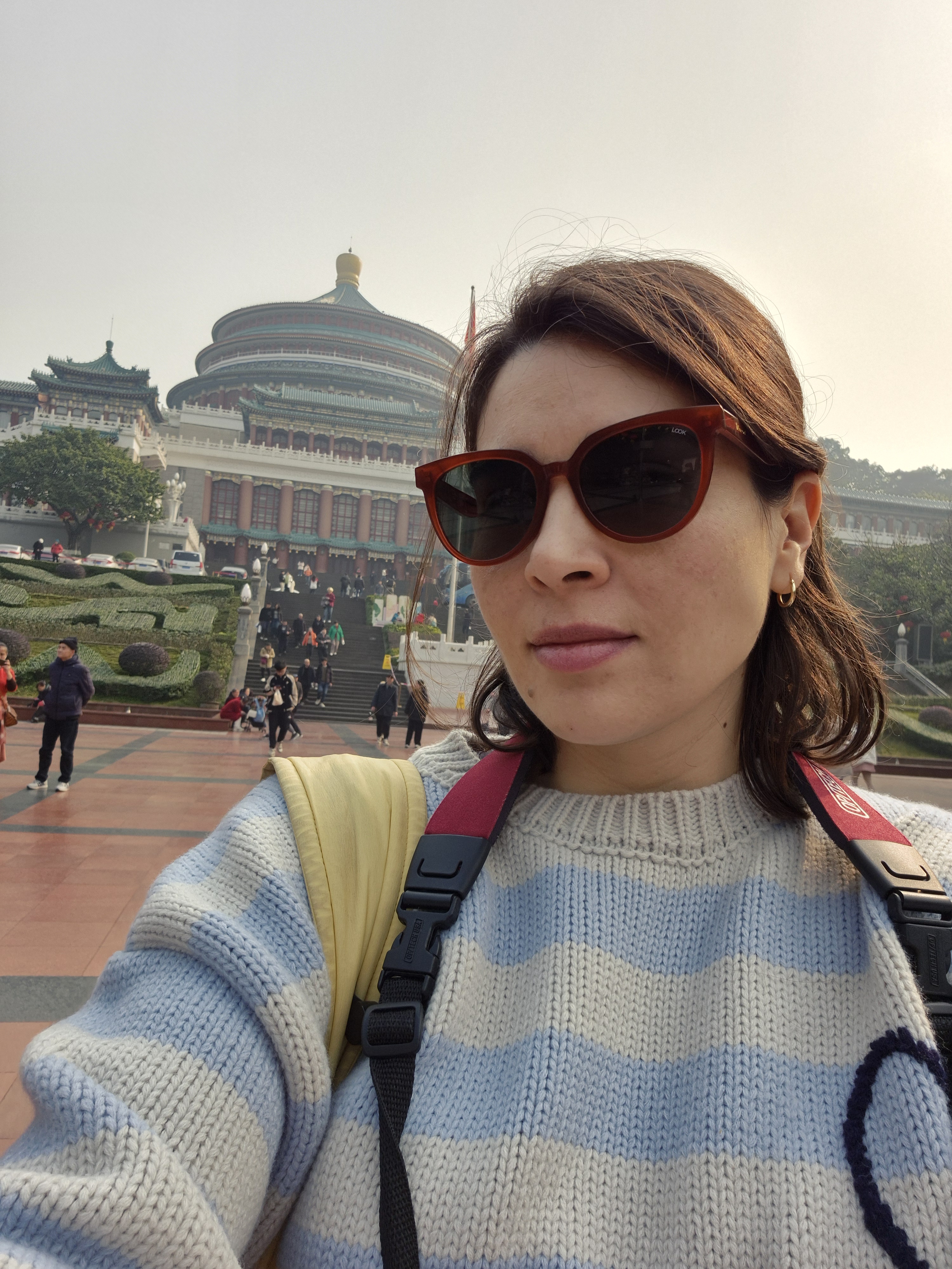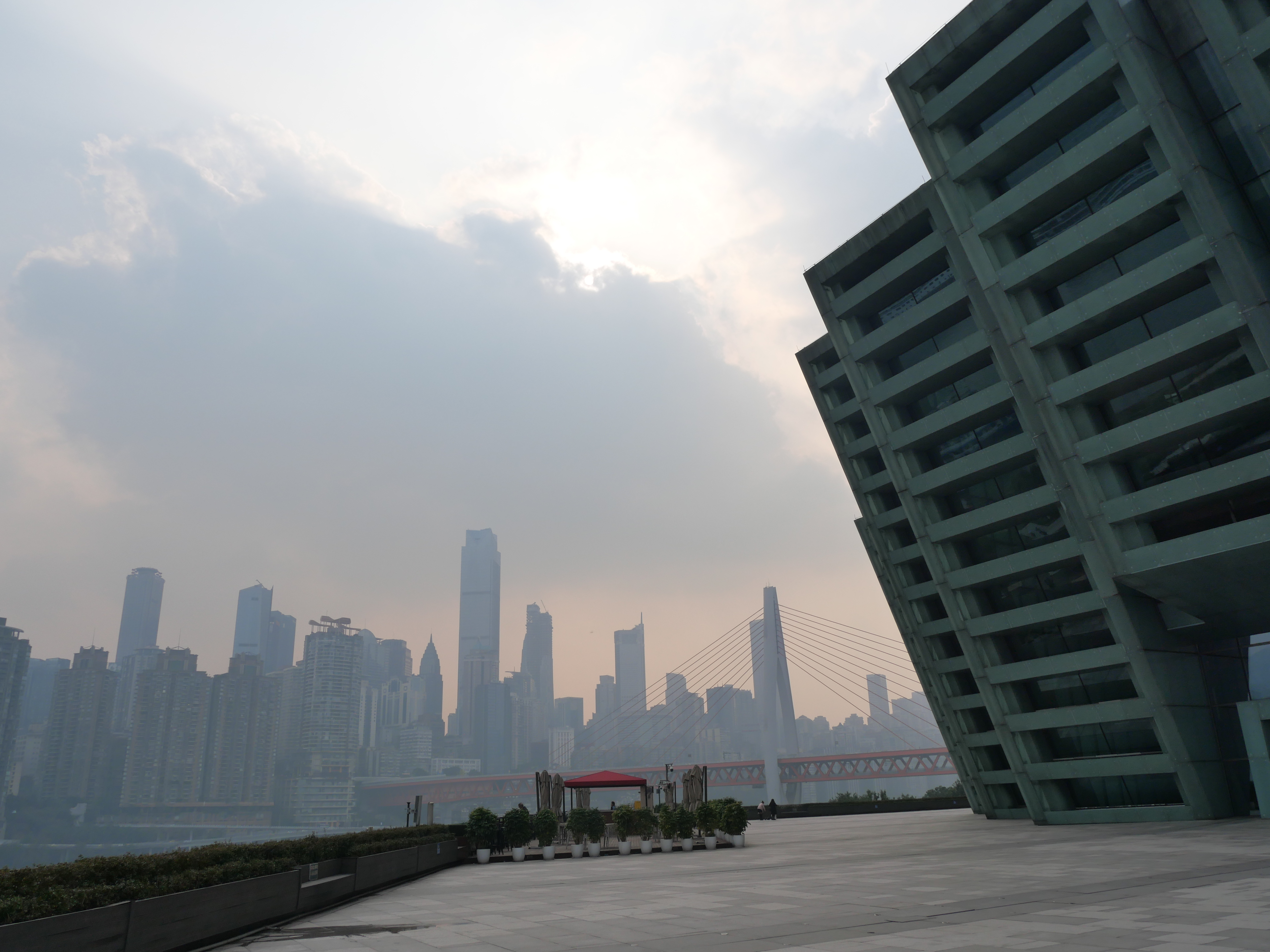 Era momento de salir de mi pequeña península y cruzar el río a la zona norte de la ciudad. Dos cosas me llevaban hacia allá: el Gran Teatro de Chongqing, que había visto el día anterior a través del río, y un restaurante de hot pot en una zona residencial que había visto en TikTok (no acostumbro hacer estas cosas “virales”, pero este sí no lo podía dejar pasar -además le dediqué horas a ubicarlo con precisión). Primero, en el teatro estuve un buen rato tomando fotos y disfrutando el día en la explanada, que estaba hermosa y con unas vistas espectaculares. De ahí me fui al restaurante, que está en una zona bastante residencial más al norte.