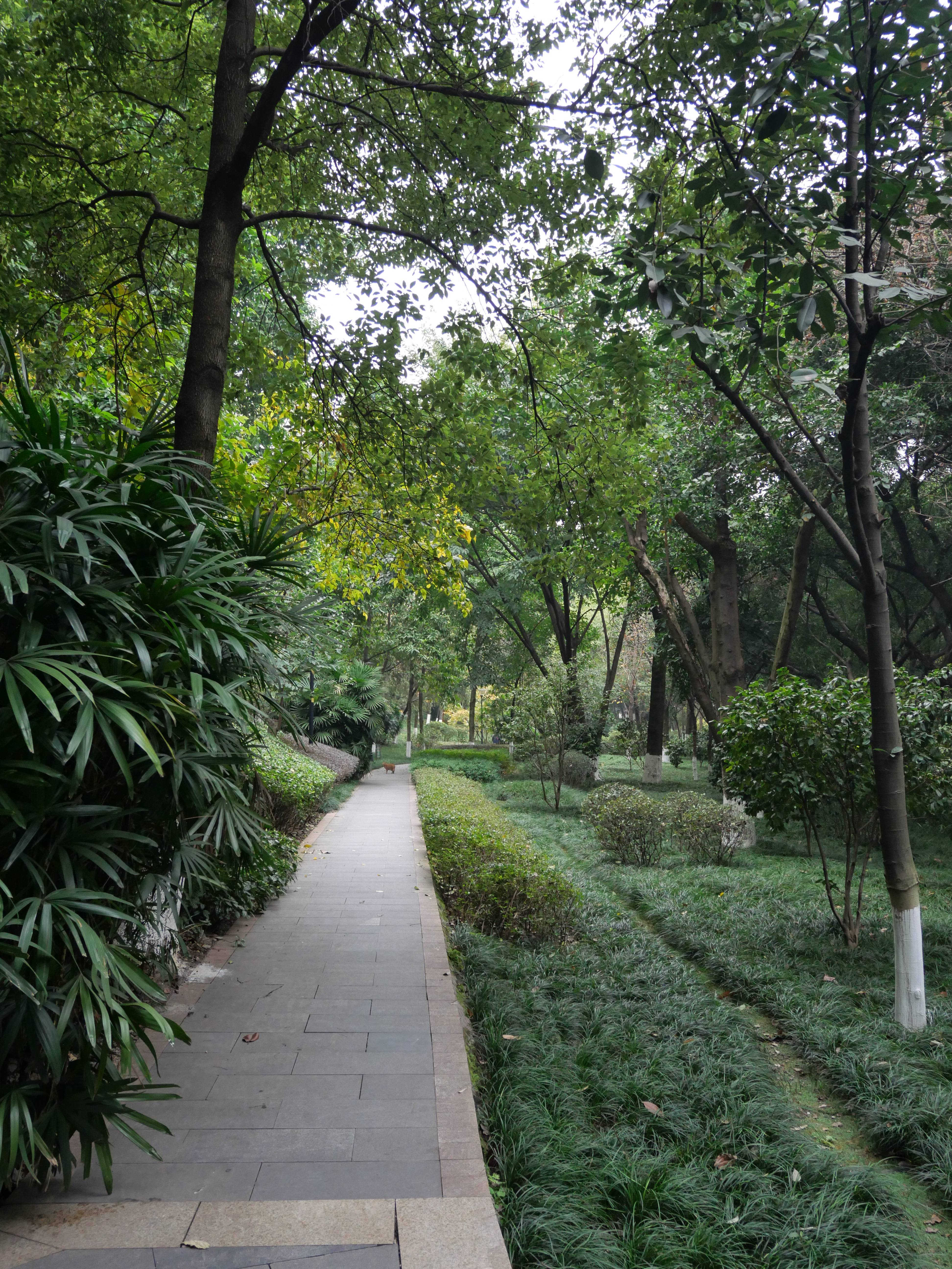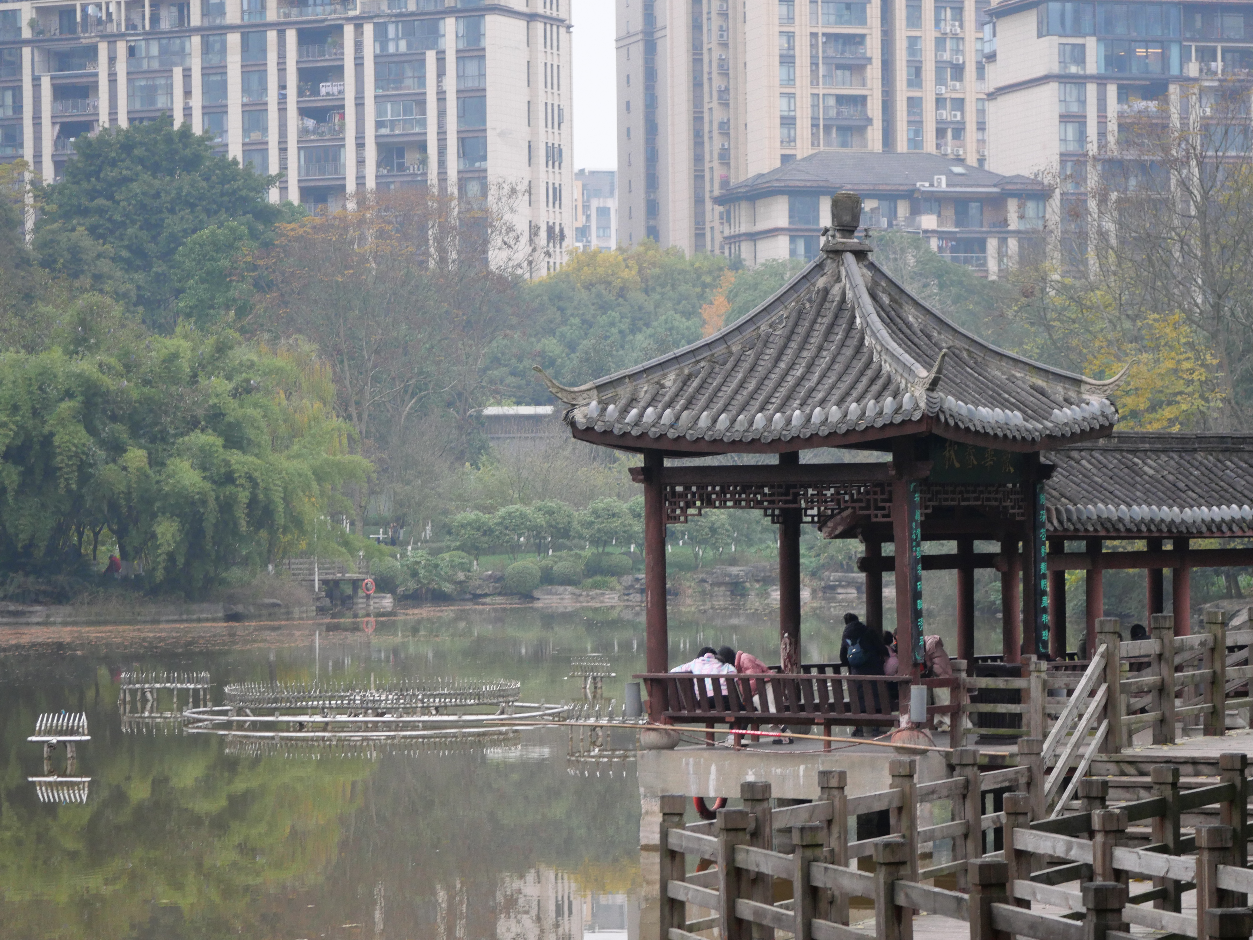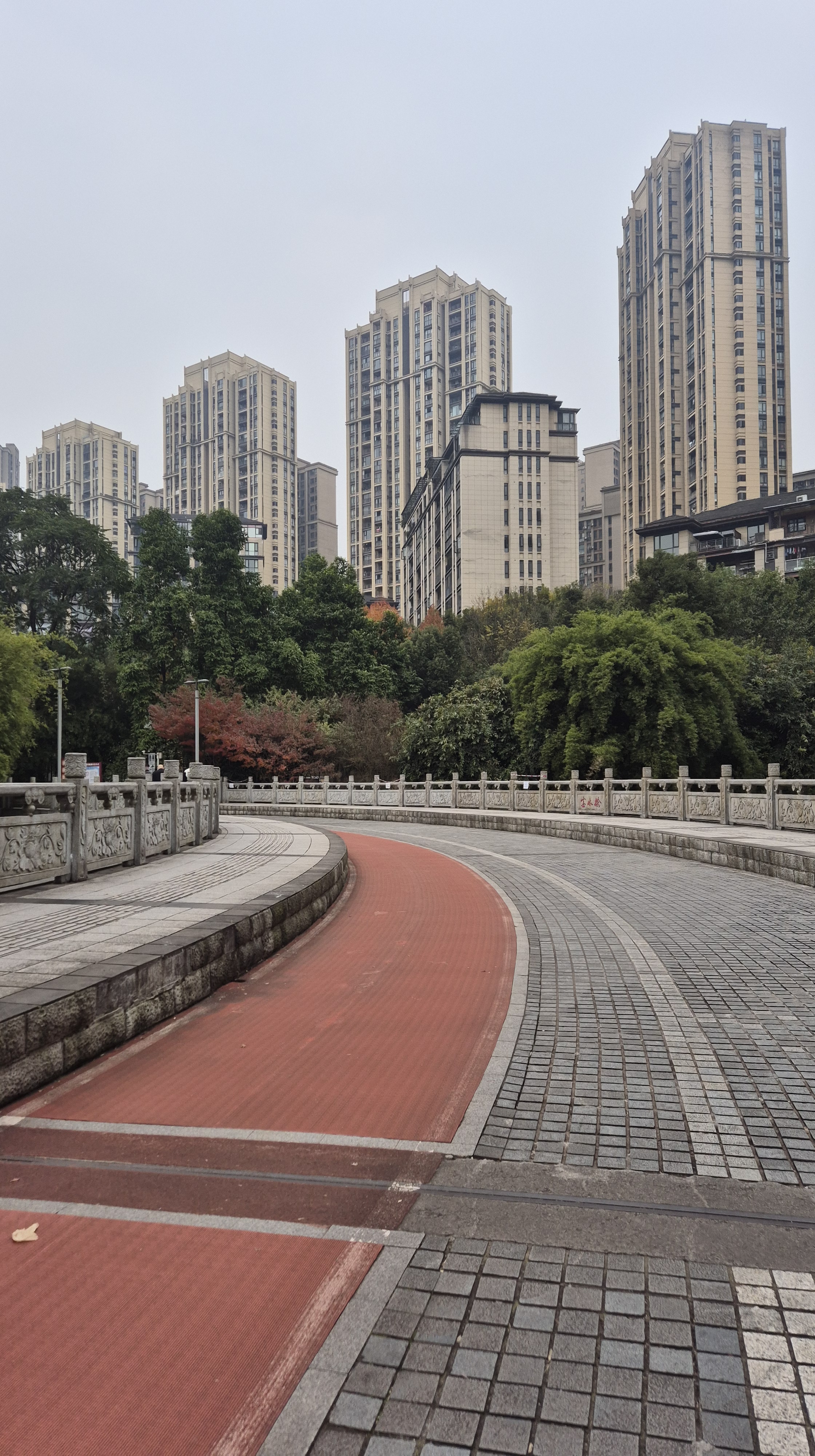 Al salir del restaurante, entre las colinas, me encontré con uno de los parques más bonitos que he visitado en mi vida: frondoso, lleno de caminos y rutas, con laguito e instalaciones varias increíbles. Verdaderamente inesperado.Paseé un buen rato por ahí, viendo a los locales disfrutar sus espacios (y bajando la comida, que no estuvo ligera). Salí por otro lado del parque lo que me permitió ver un rato más la vida residencial de Chongqing, entre sus altos edificios e infraestructura de locura. Antes de terminar el día, visité el distrito financiero, que me quedaba cerca en metro, donde recorrí un rato más sus áreas comerciales y disfruté las vistas nocturnas de la ciudad.