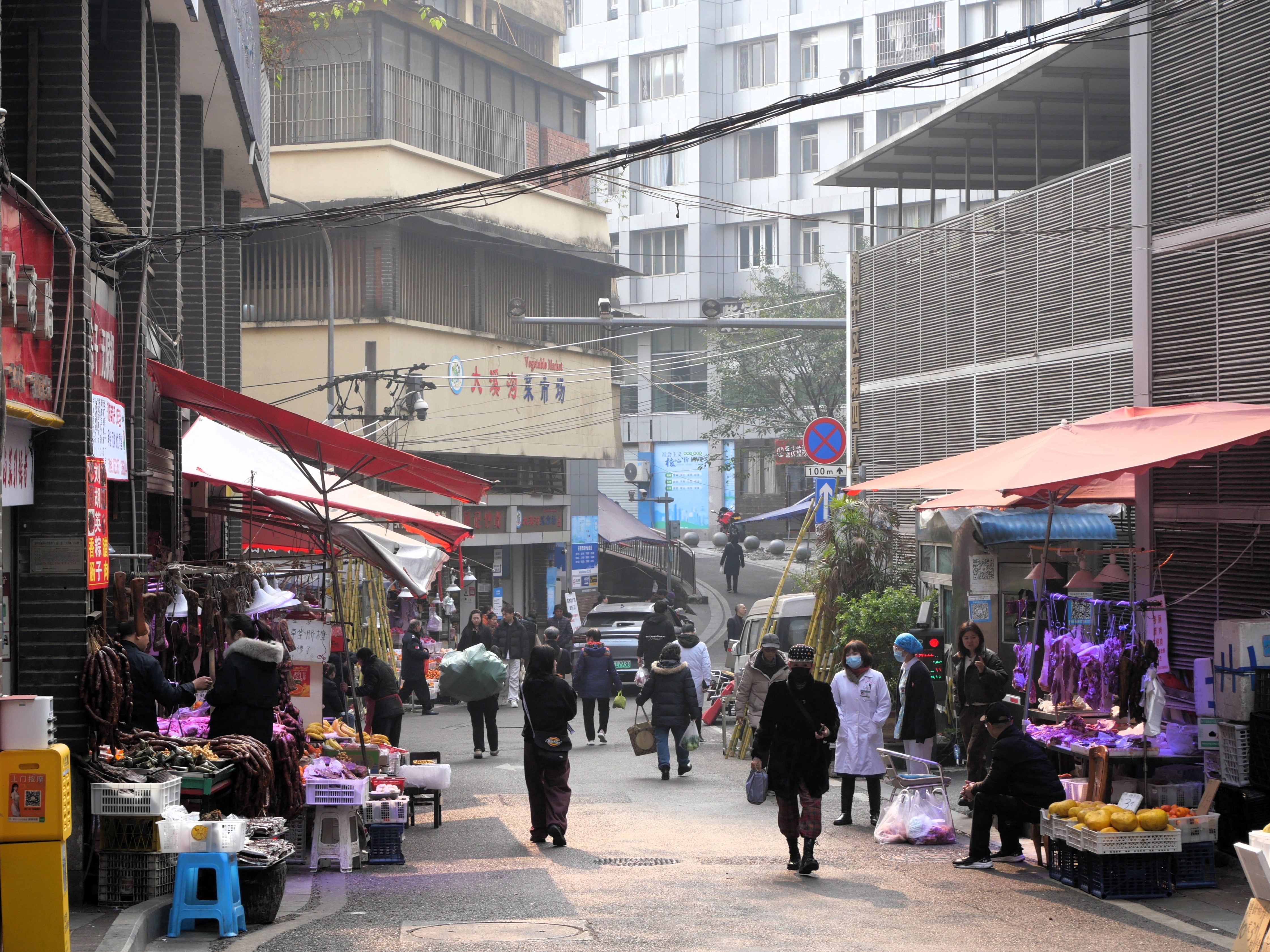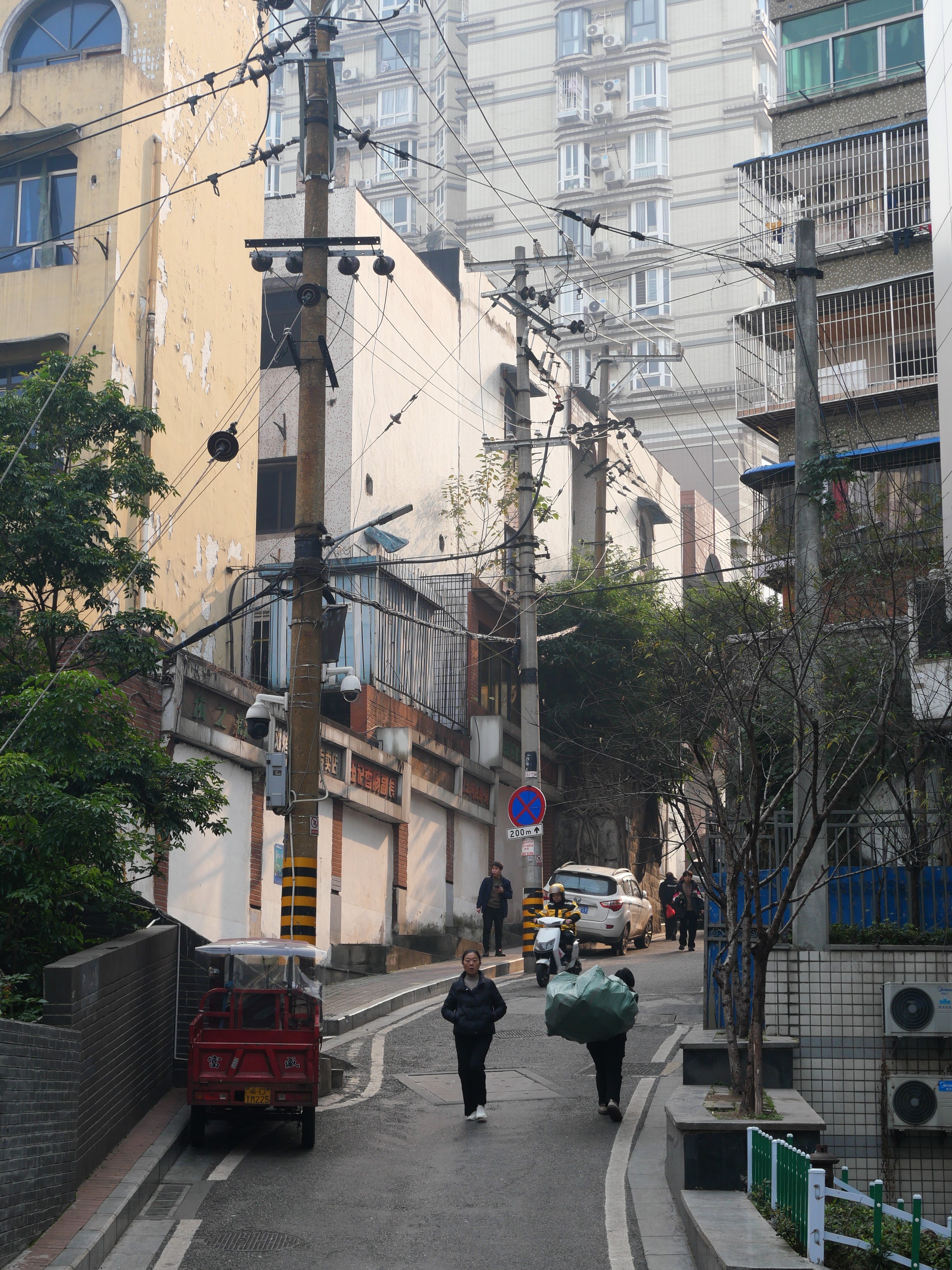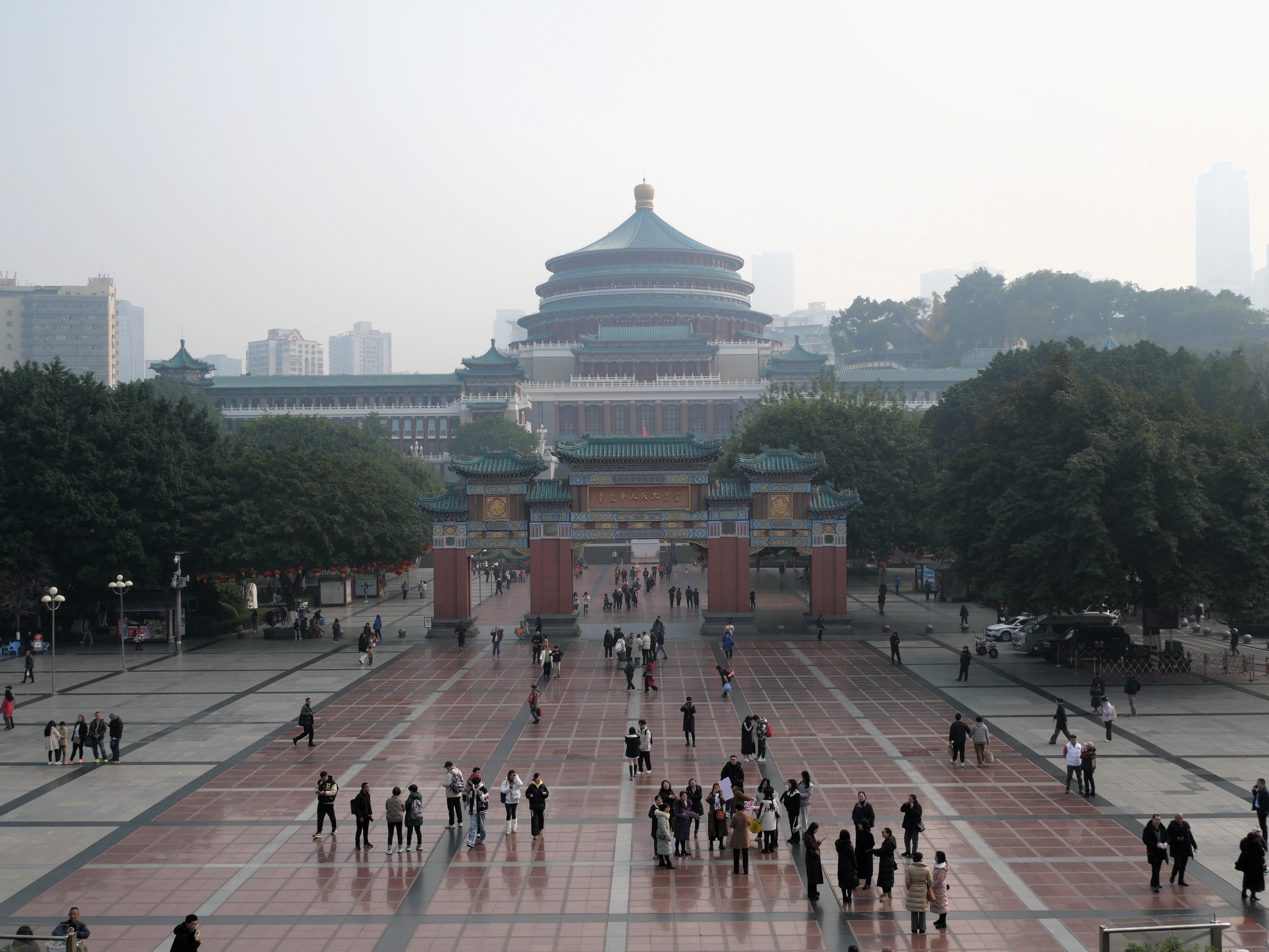 Chongqing está resultando ser una ciudad llena de sorpresas, y hasta lo que tenía planeado hacer me acaba sorprendiendo. Comencé el día visitando una de las plazas más icónicas de la ciudad, donde se encuentran el Great Hall of the People -un importante foro construido en 1954- y el Museo de las Tres Gargantas, el más importante de la ciudad – de arqueología e historia-. Para aprovechar un poco más la ciudad, algunas veces me bajo una parada antes de lo que me tocaría en el metro, esto me lleva por callecitas y zonas que no necesariamente están en la ruta de los turistas y es más fácil ver la vida de los locales. Claro que con esta “estrategia” me ha salido el tiro por la culata en más de una ocasión y he acabado caminando en medio de la nada, pero, por suerte, este no fue el caso; caminé por una zona residencial llena de mercados, con edificios entre escalonados, con patios y descansos en distintos niveles que se iban armando como legos.