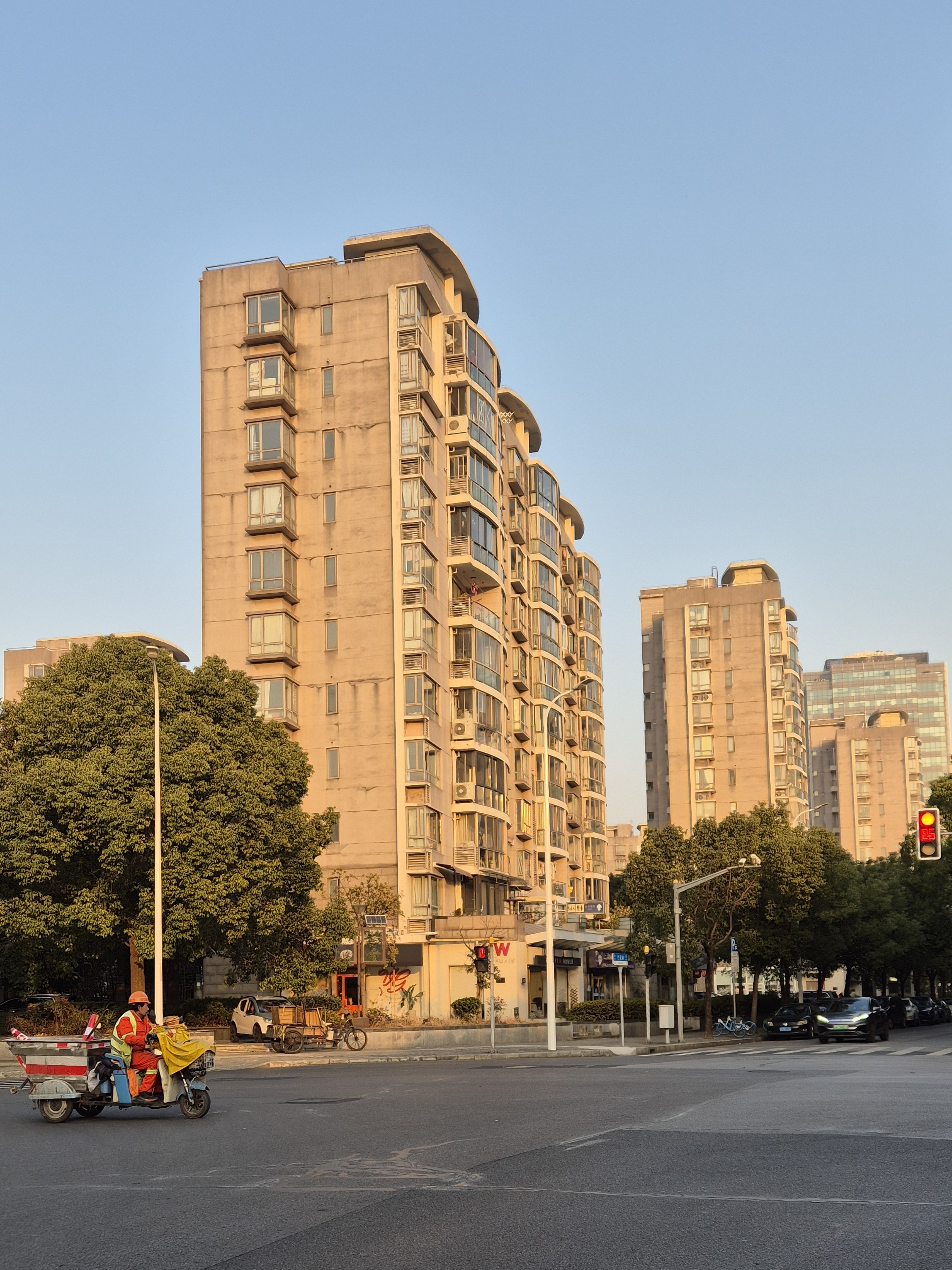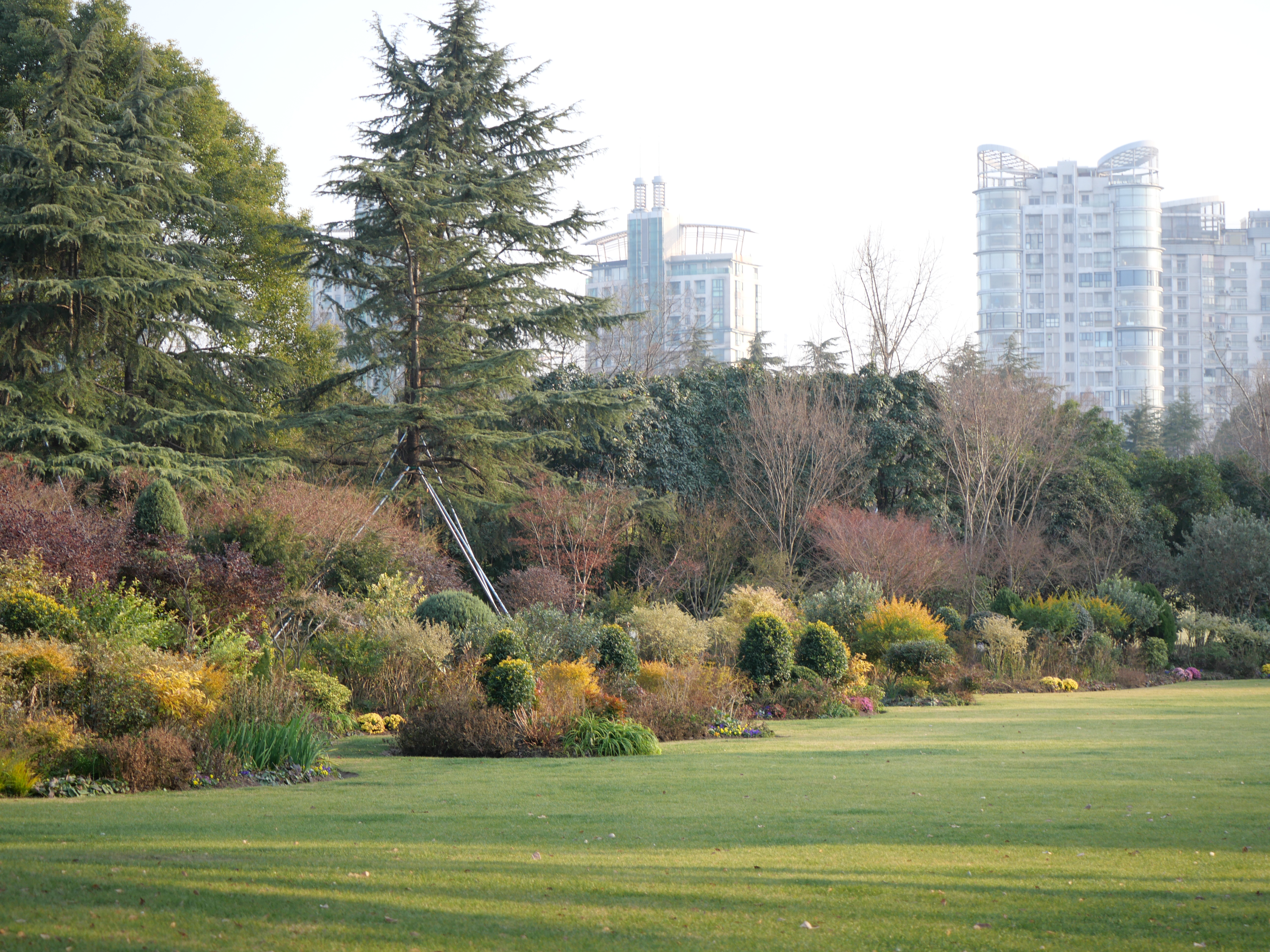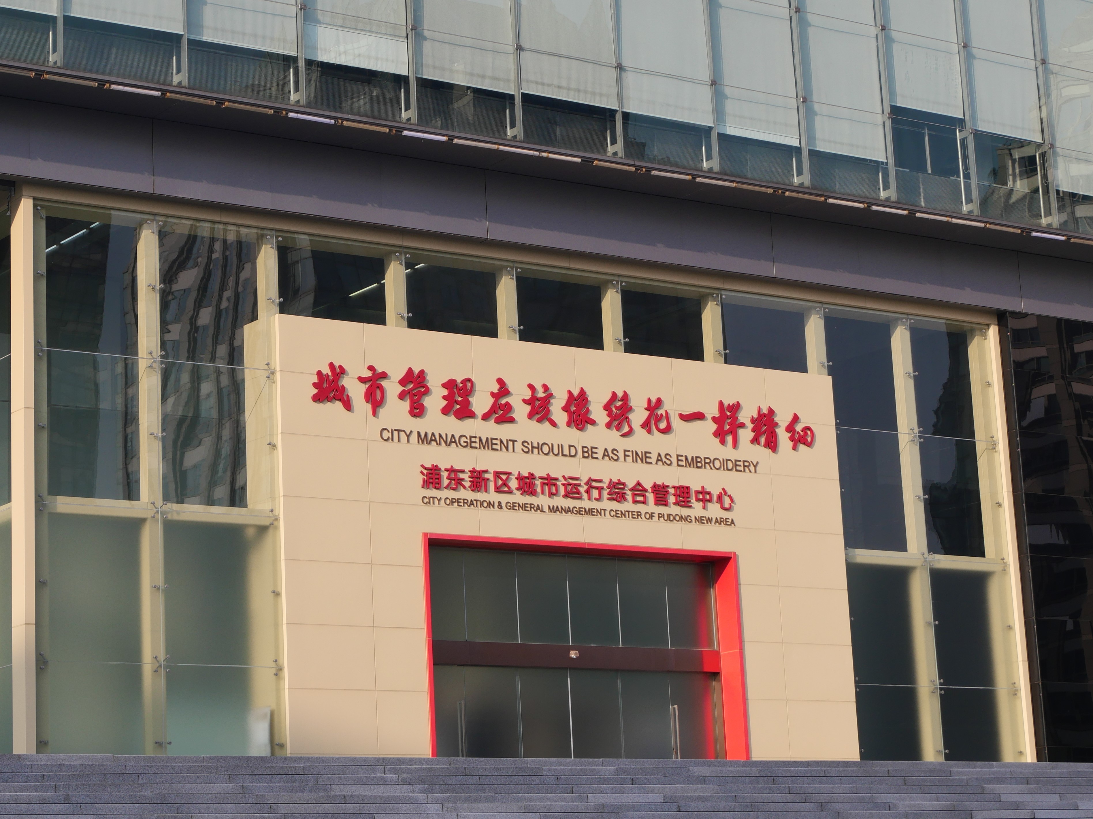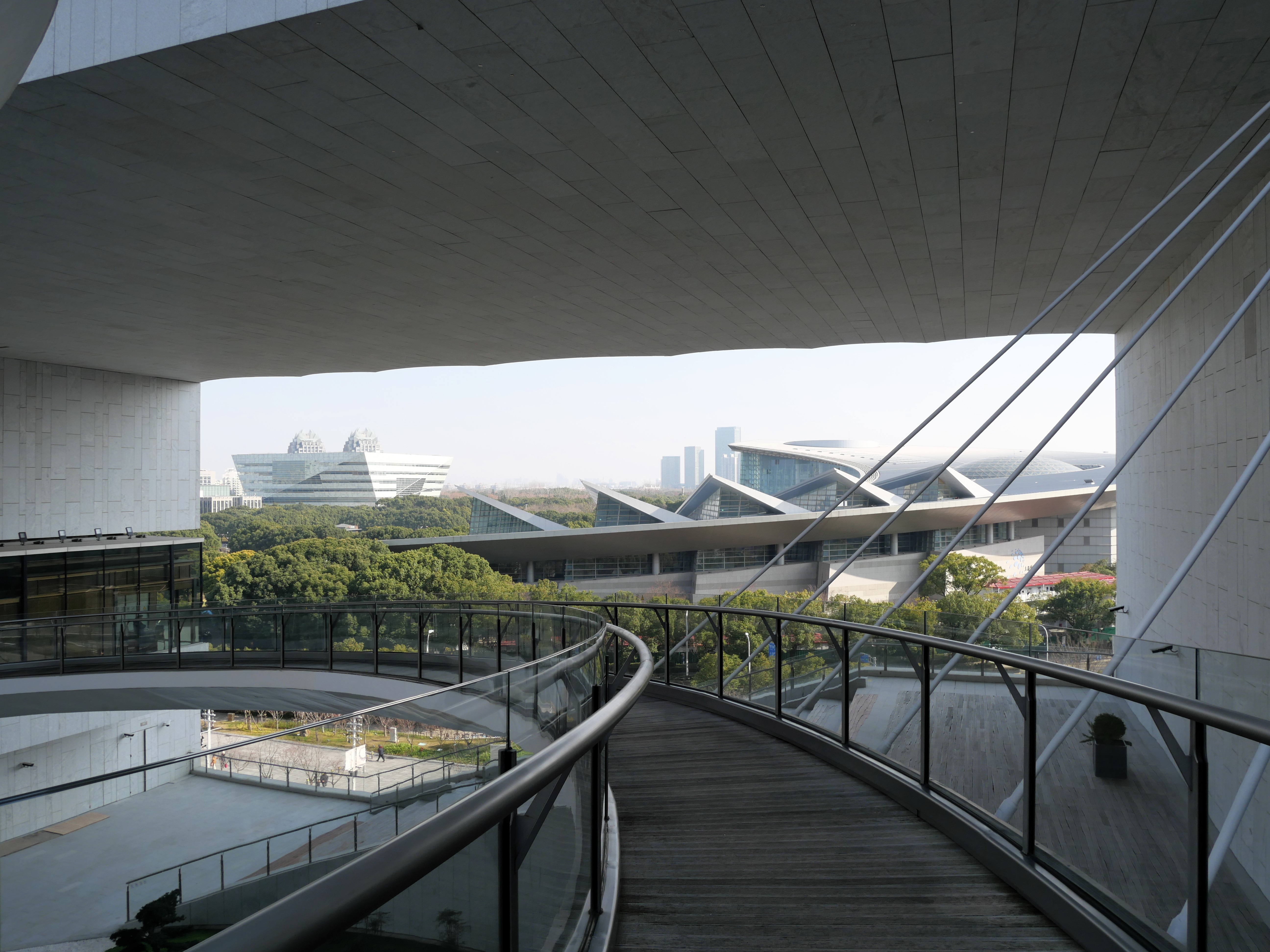 Como siempre, llegué sin saber qué esperar. Salgo de la estación de metro y me encuentro con una plaza enorme y hermosa, rodeada de jardines entre los que se medio escondían todos estos imponentes edificios, al fondo grandes edificios de oficinas y más al fondo los rascacielos de Pudong. Me llamó la atención un edificio increíble que, de todos los que veía, era el único que no tenía mapeado.