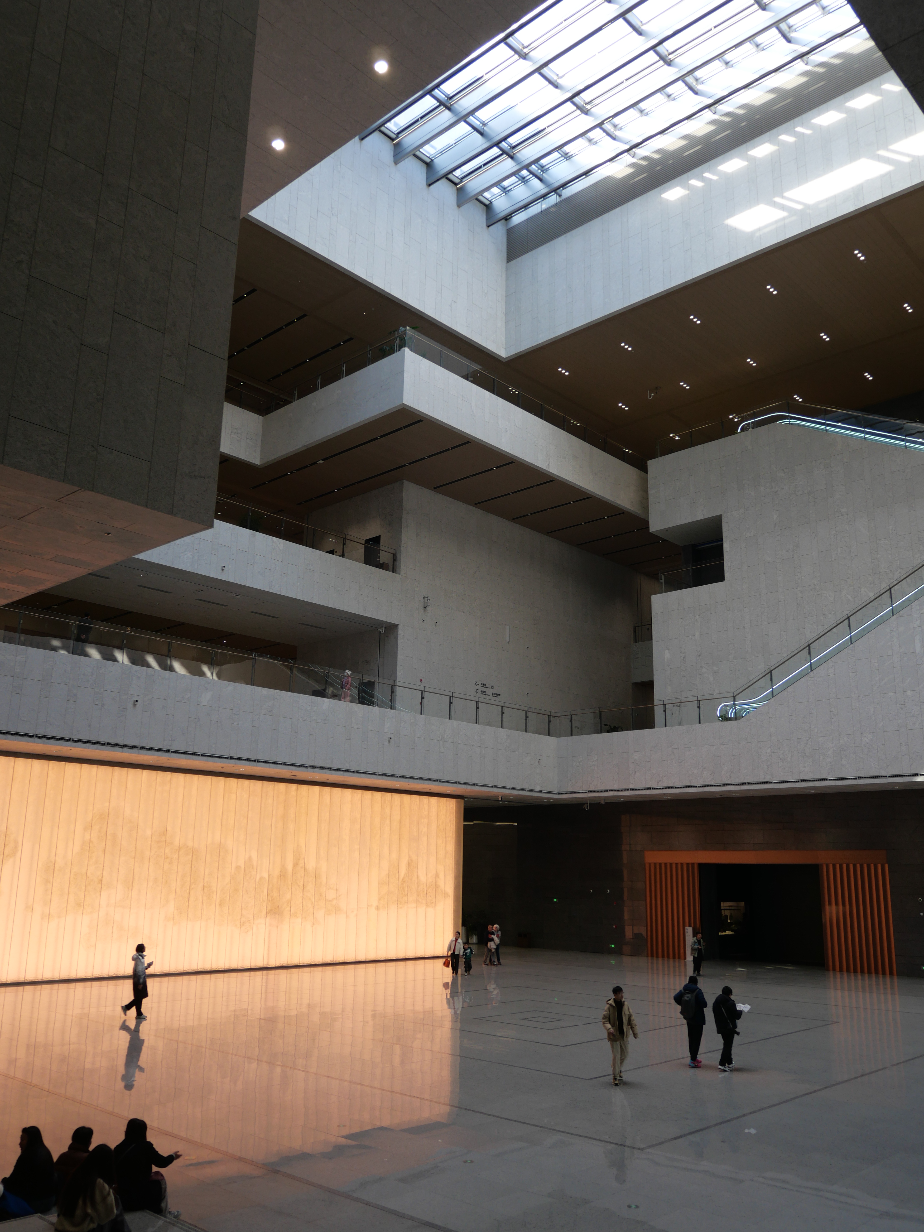 Hora de la app china de mapas y Google Translate -porque evidentemente Google Maps no me había dado la información- y resultó ser el Shanghai Museum East Branch, el “hermano” del icónico Shanghai Museum de People’s Square (al que no había entrado porque había una exposición temporal de Egipto y estaban agotados los boletos). Me acerqué en la bici a verlo y se veía gente, poca porque era tempranón, pero no parecía estar cerrado a pesar de ser lunes. Desmonté para acercarme aún más y claramente estaba abierto, entré a confirmar si sí era el museo -me parecía rarísimo no tener mapeado ese mega lugar-. Y pues, para mi sorpresa ¡no solo es el “hermano” del museo, ahora es la sede del museo de Shanghái! El museo viejo, que sigue estando hermoso pero ya les quedaba chico, ahora es sede de puras exposiciones temporales – como la de Egipto- y un par de colecciones menores. Y resulta que este es el único museo de Shanghái que abre el lunes y cierra el martes, de forma que todos los días de la semana uno puede visitar el Shanghai Museum. ¡Pura suerte!