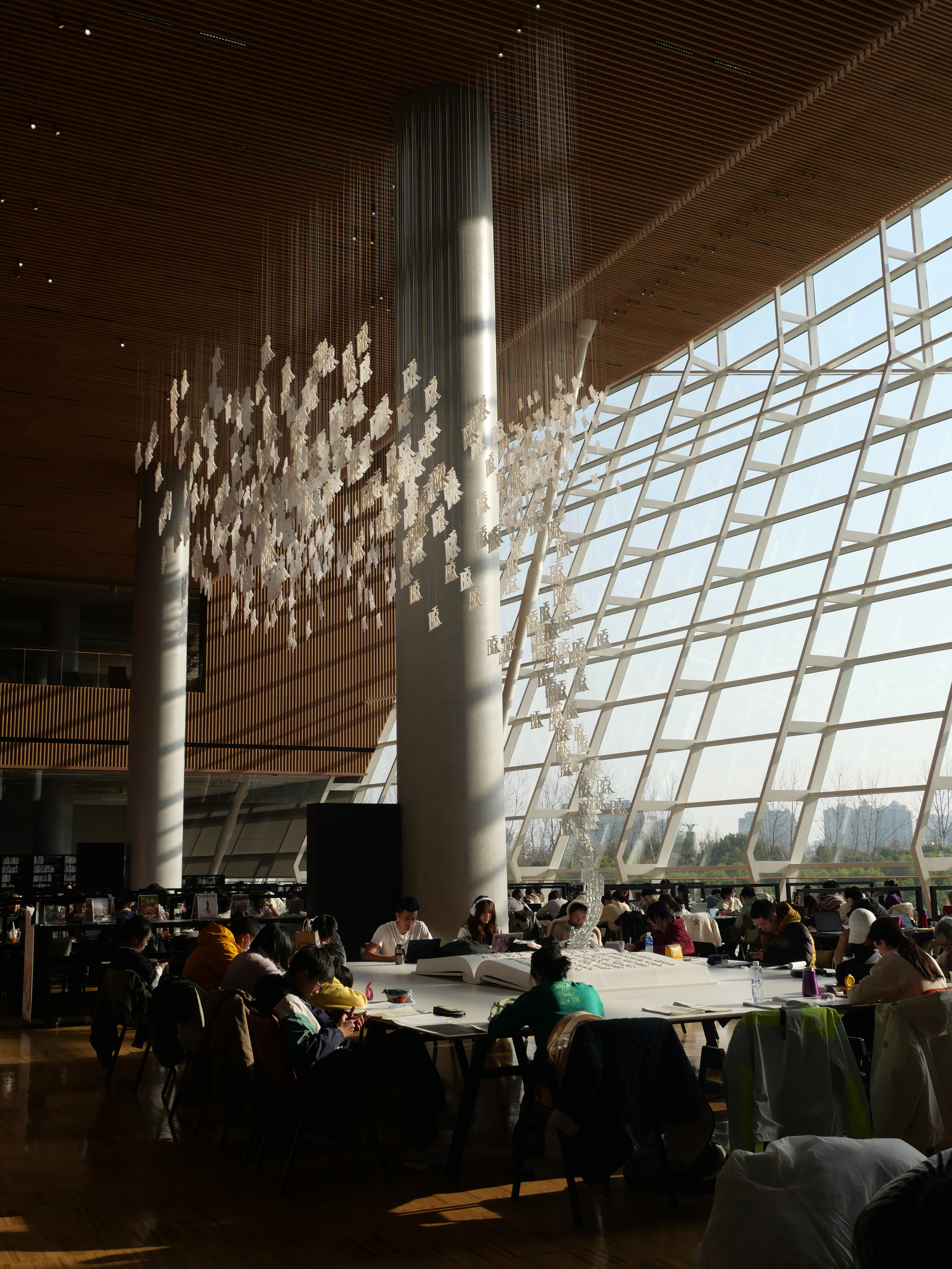 Estuve un buen rato en el museo, salí a la hora de la comida, me eché una sopa de wontons espectacular, y agarré la bici para ir a la biblioteca -que después de la de Chengdú, no me quería perder-. Si les soy franca, las bibliotecas de China me fascinan pero me deprimen, porque me da muchísimo gusto ver que existan estos espacios públicos tan increíbles, tan al servicio de sus ciudadanos, como que me ponen en un mood reflexivo de lo mal que lo estamos haciendo como país -o sistema, no es exclusivo de México- y del potencial desperdiciado (pero esa es una discusión para otro momento). De ahí me fui al parque; hermoso, enorme, con jardines, lagos, huertos y me dicen por ahí que hasta ¡una verdadera cabeza Olmeca! -que no me encontré-.